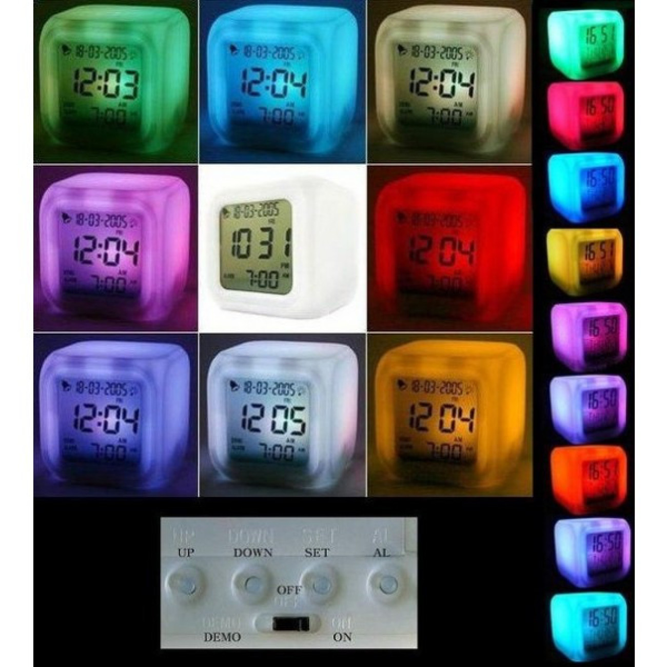 Циферблат виконаний у дзеркальному стилі з великими цифрами зеленого кольору, що легко читаються. Мають батарейку для пам'яті часу у разі вимкнення електрики. Оснащені автоматичним зниженням яскравості дисплея з 20:00 до 7:00. Також у годиннику є можливість налаштування трьох будильників (дуже зручно для прийому ліків тощо).