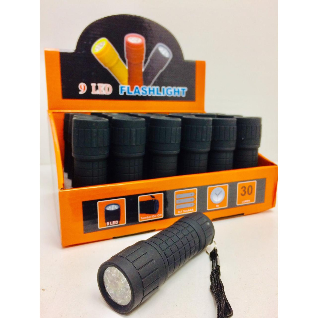 Опис Ліхтар ручний прогумований на батарейках 3AAA x 9 LED BL 512/ 903 (240 шт./ясть)