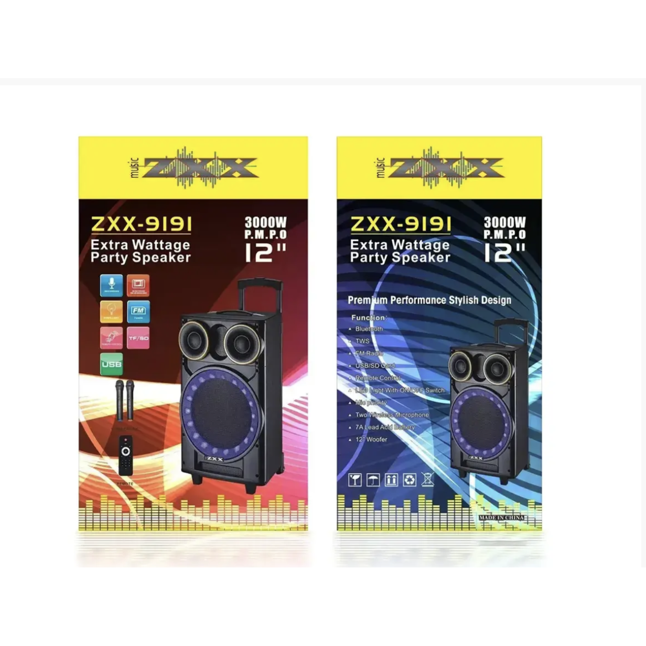 Опис Акустична переносна колонка ZXX-9191/ 8215 60Вт 12" 67х38х32см TWS/FM/USB/TF/SD/BT/REC/LED/2MIC (1)