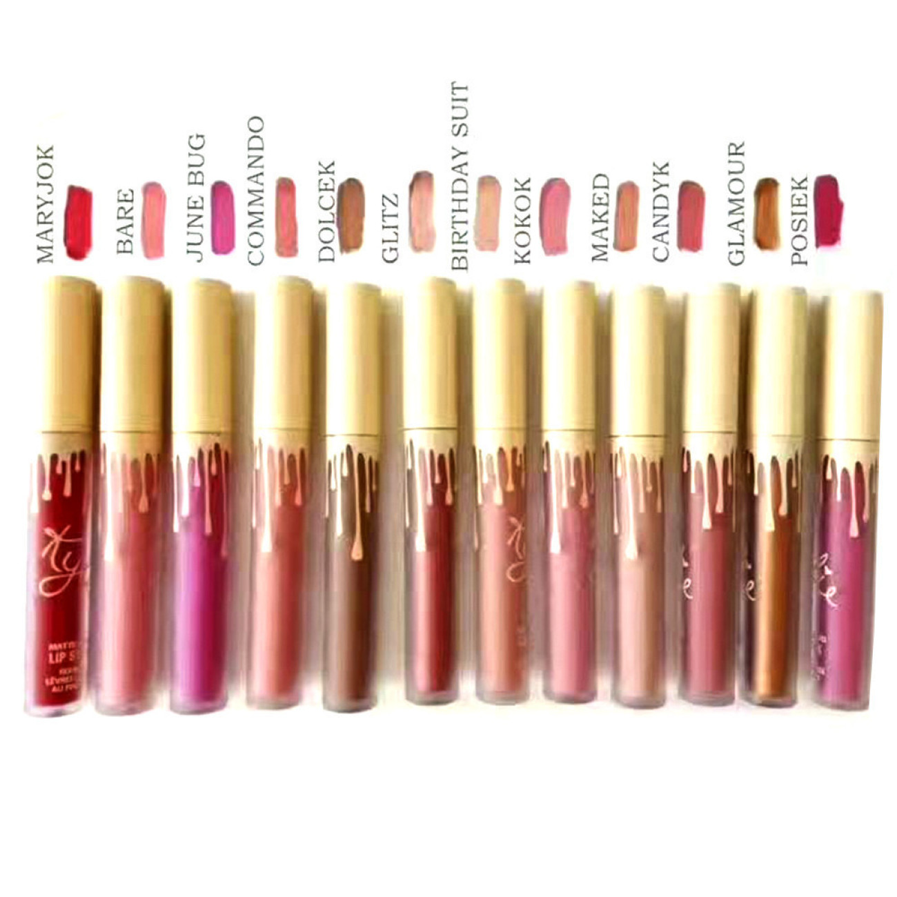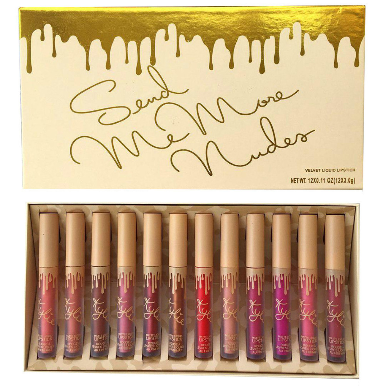 Опис Набір матової рідкої помади KYLIE (золотої, 12 шт. в упоковці)