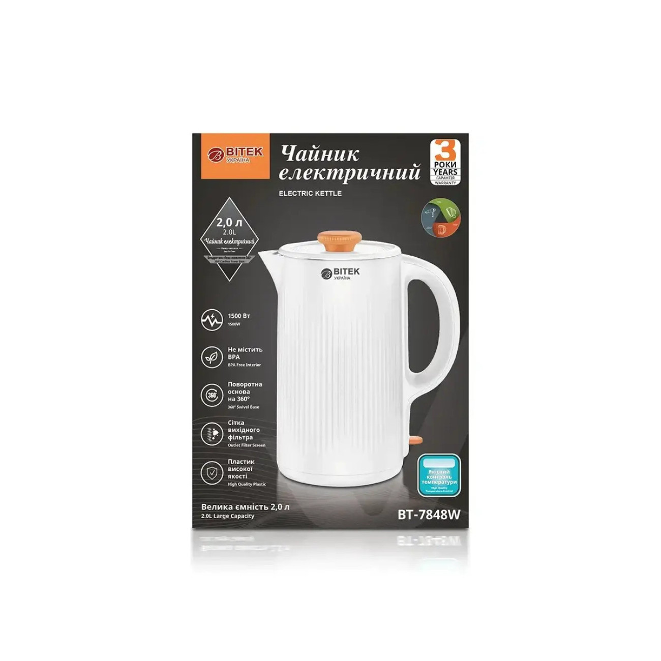 Опис Чайник електричний 2,0л 1500Вт BITEK BT-7848W/ 6986 (16 шт)