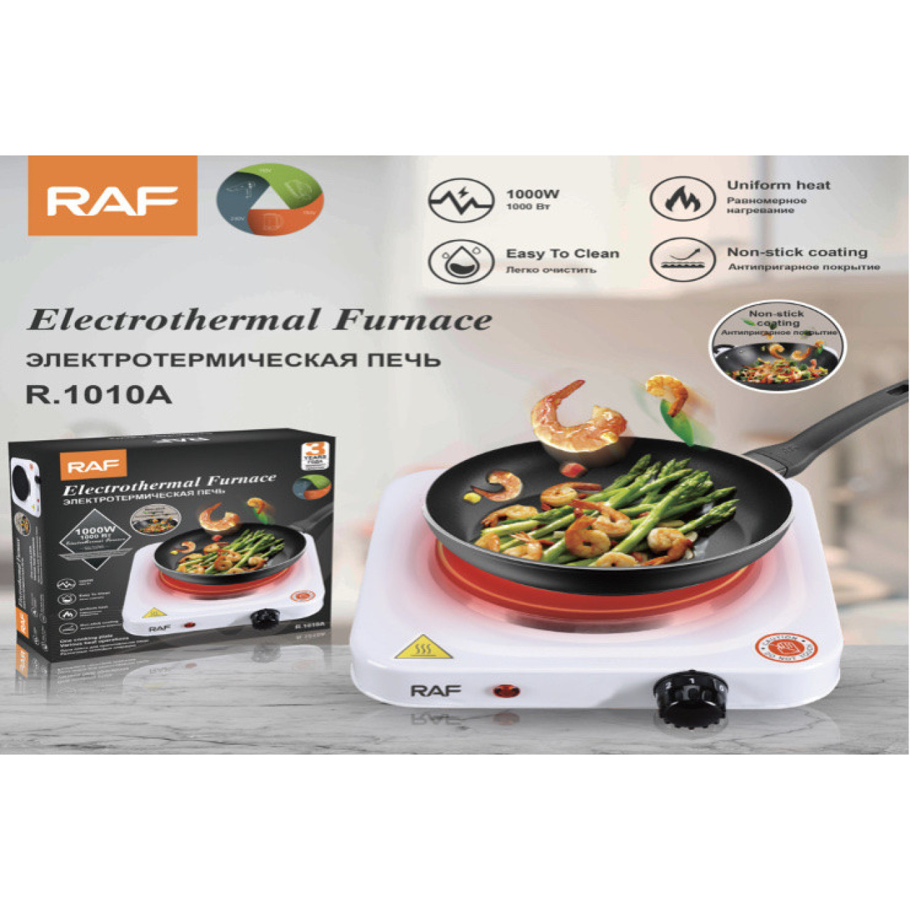 Плиту RAF.8010A можна легко транспортувати в будь-яке відповідне місце, оскільки її функціонування залежить виключно від наявності електричної мережі. Плита має одну конфорку зі спіральним нагрівальним елементом. Регулювання роботи плити можна здійснювати за допомогою механічного перемикача. Емальове біле покриття плити надає їй привабливості в очах користувачів, які віддають перевагу класичному дизайну побутових приладів.