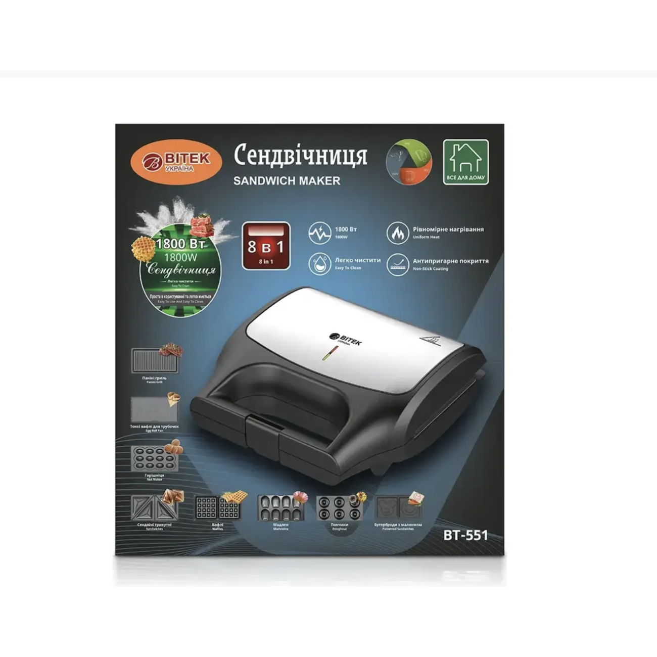 Питання та відповіді (FAQ) Сендвічниця 1800Вт 8 в 1 BITEK BT-551/ 6710 (4)