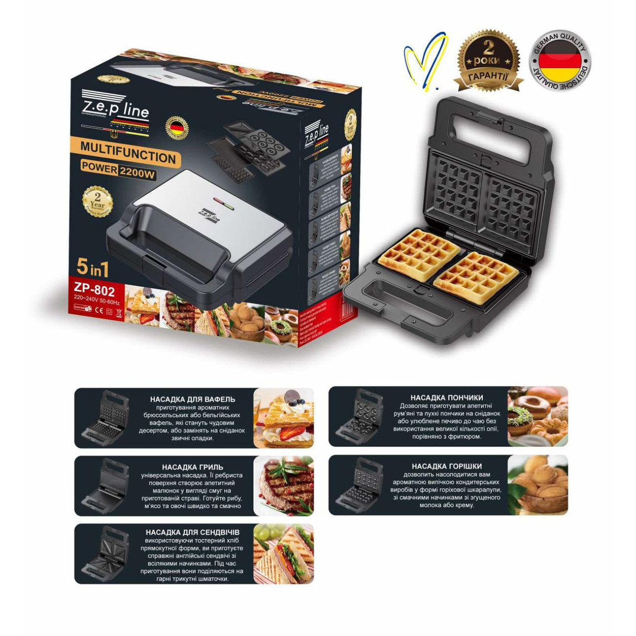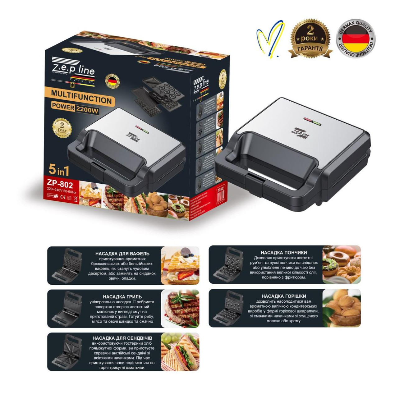 Опис Вафельниця Гриль Сендвичница 5в 1 Zepline ZP-802 (6)