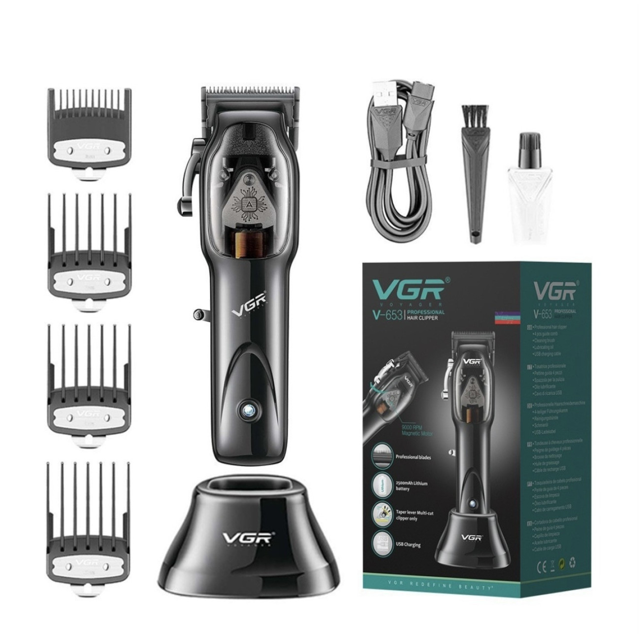 Машинка VGR оснащена ножовим блоком шириною 45 мм з мінімальним зрізом волосся 0,8 мм. R-подібні сторони ножа зроблені для того, щоб під час використання не пошкодити шкіру або пальці. Ножовий блок Black Diamond Carbon DLC повністю регульований з фіксованим кутом із DLC та дрібною ріжучою кромкою дозволяє легко скоротити зазори для максимально точного зрізу та чистової обробки. Ніж найвищої якості Black Diamond Carbon DLC довше залишається гострим, холодним та без іржі.