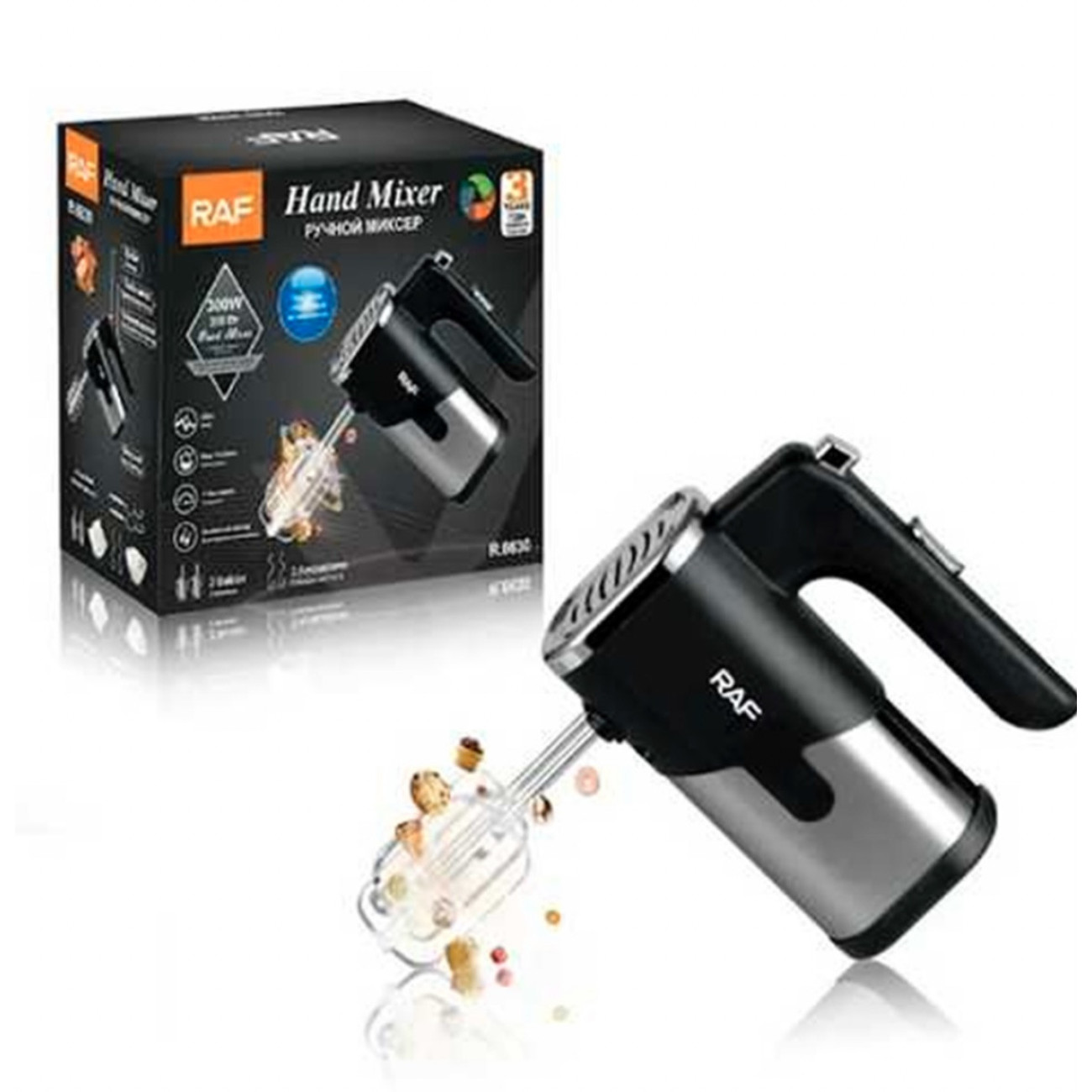 Кухонний електричний міксер RAF R-6630 просто незамінний на вашій кухні. Він простий у роботі, але при цьому багатофункціональний. Прилад здатний збити продукт до будь-якої консистенції. Міксер RAF R-6630 має 5 режимів швидкостей. Також є режим «Турбо».