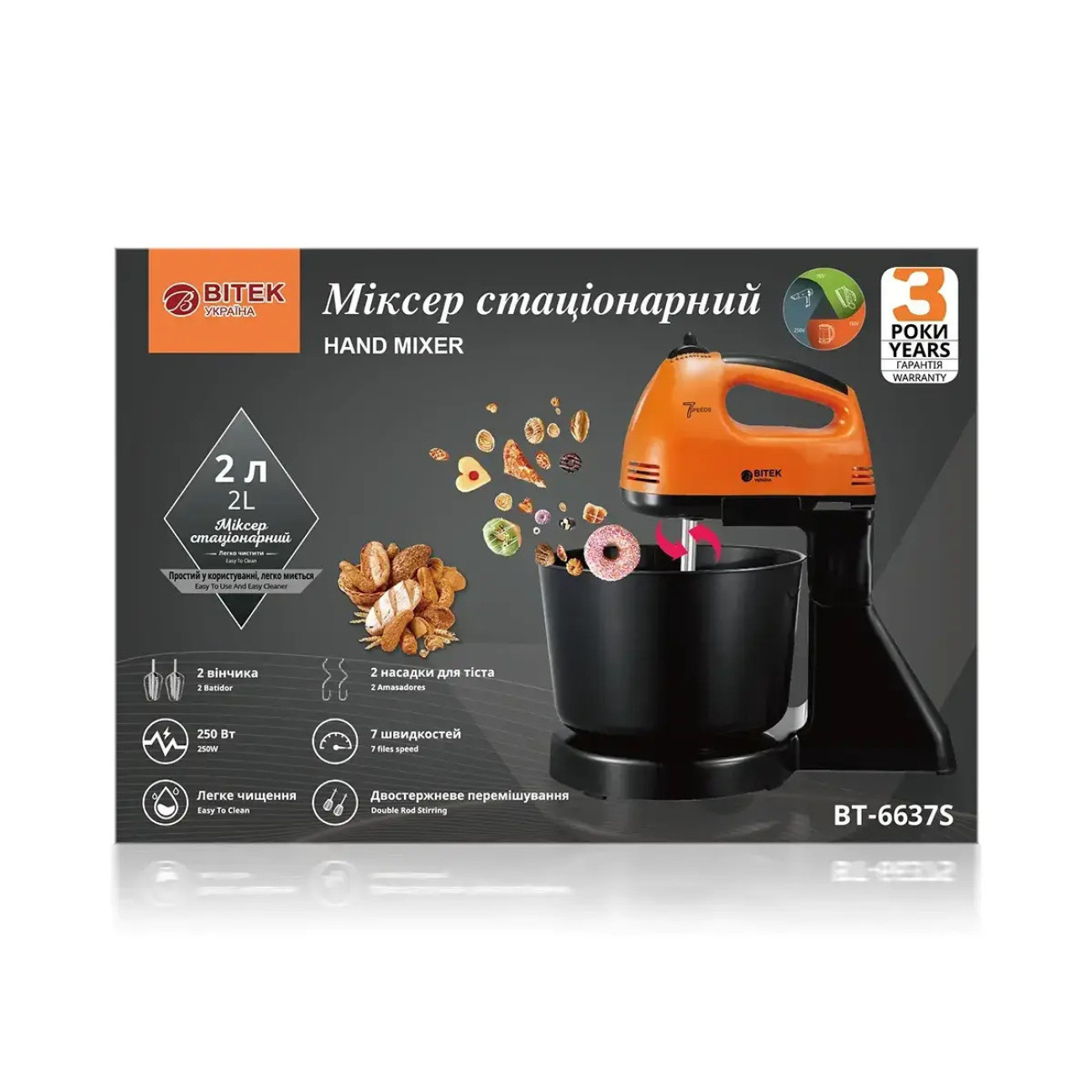Міксер стаціонарний 250Вт пластикова чаша BITEK BT-6637S/ 7112