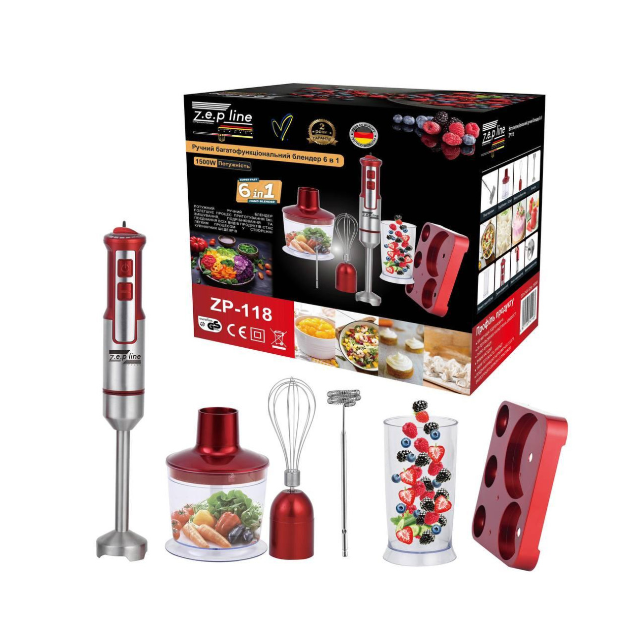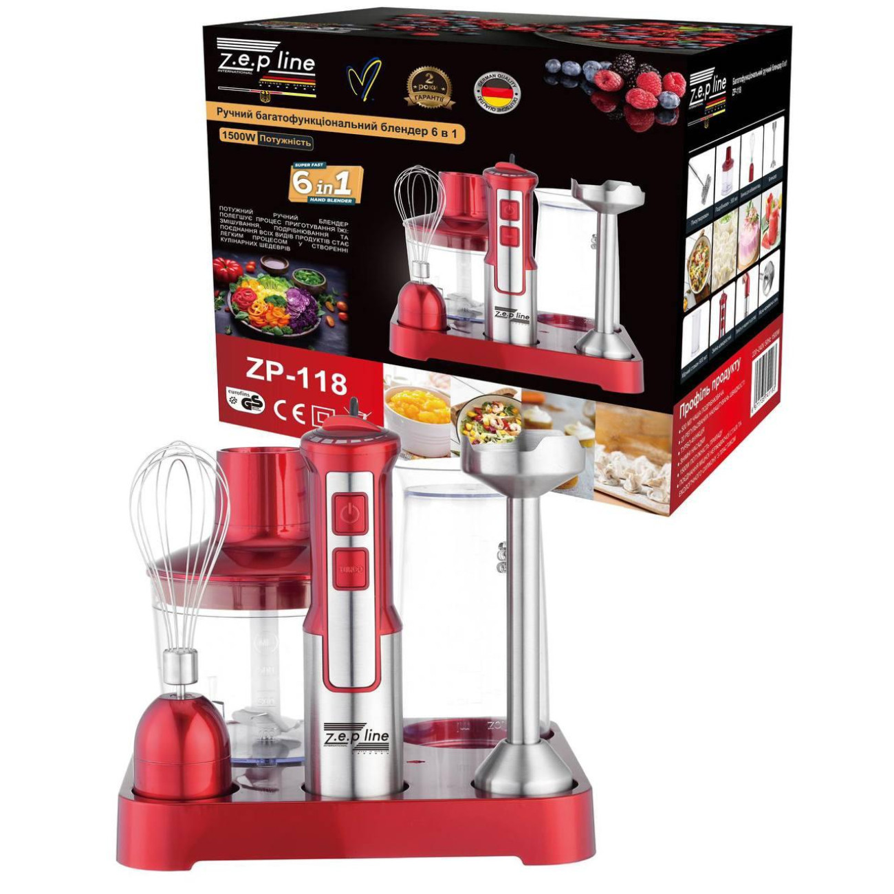 Опис Ручний заглибний блендер 6в1 на підставці Zepline ZP-118 1500 Вт Червоний (6)