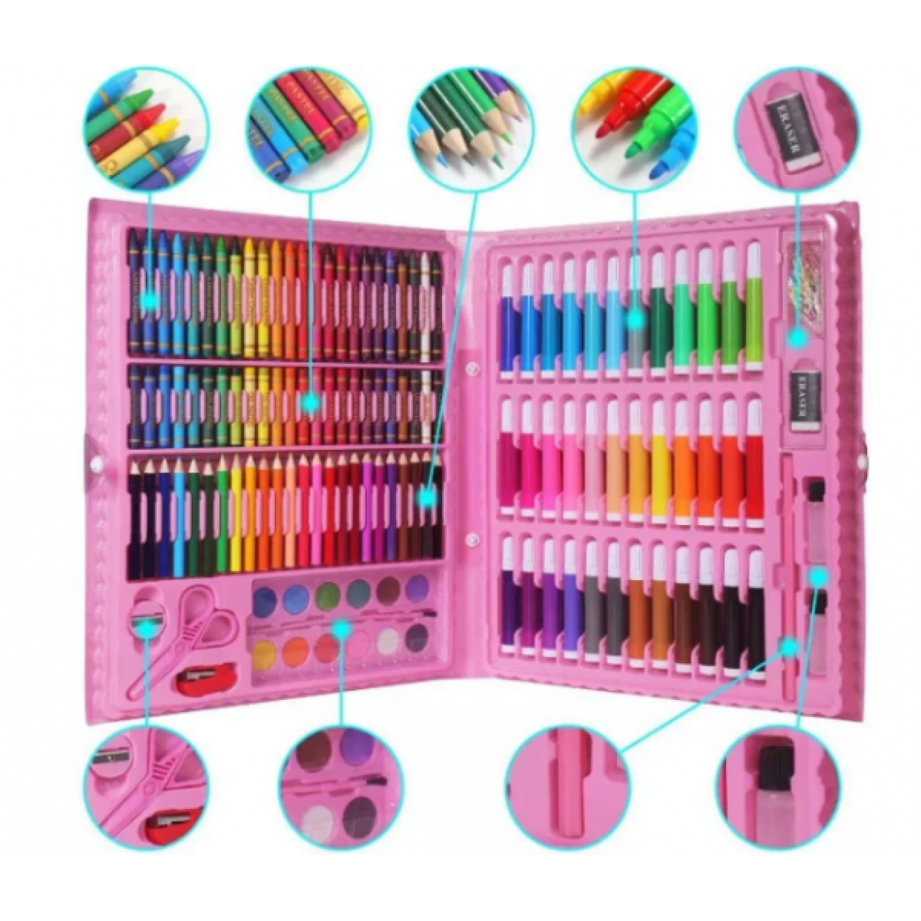 Опис Набір для дитячої творчості у валізі з 150 предметів рожевий EL-1095-1 (20 шт./ясть)