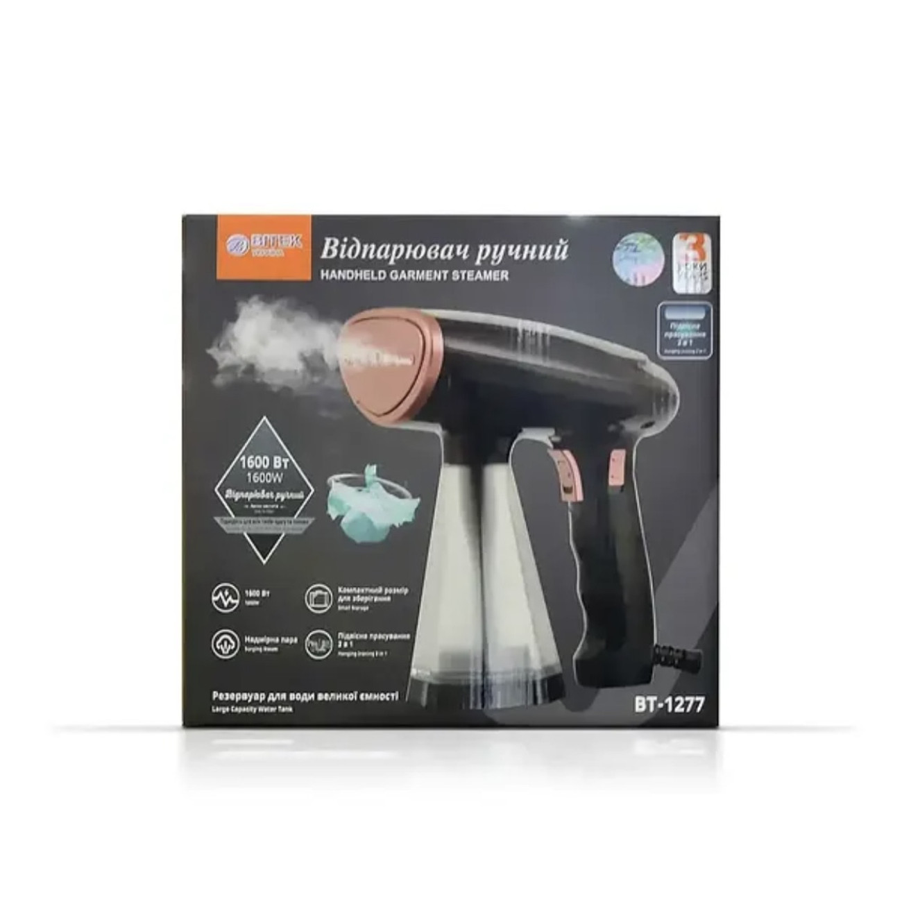 Опис Відпарювач ручний 1600Вт BITEK BT-1277B/ 6604 (12)