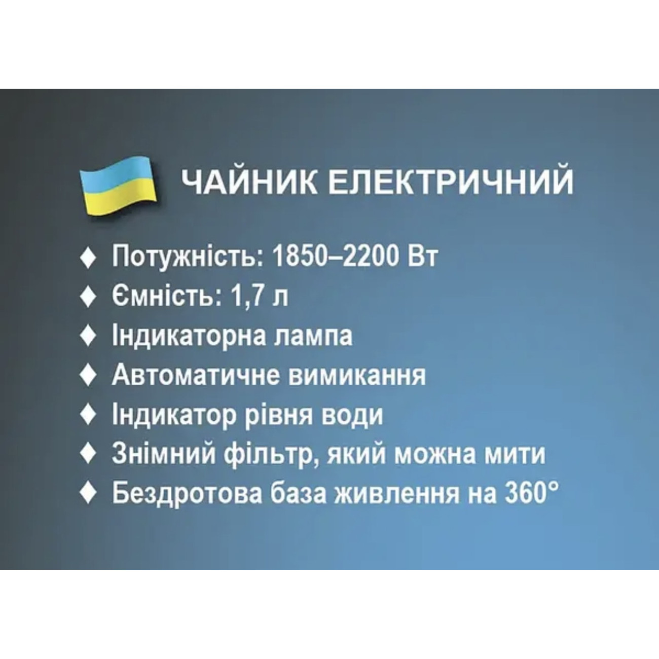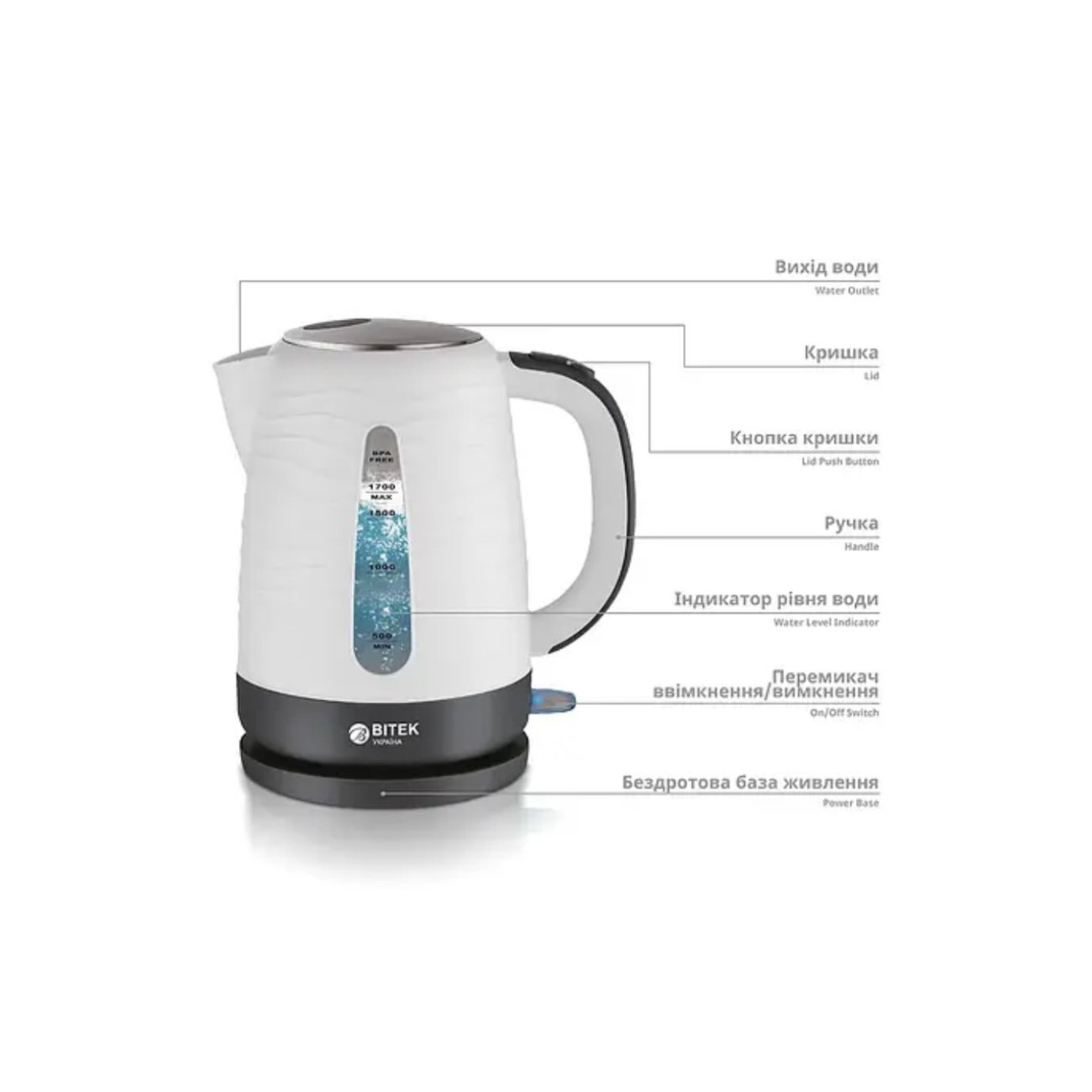 Опис Чайник електричний 1,7л 2200Вт BITEK BT-152/ 7043 (16)