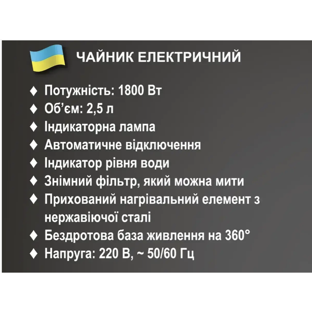 Опис Чайник електричний 2,5л 1800Вт BITEK BT-7955/ 6756 (16)