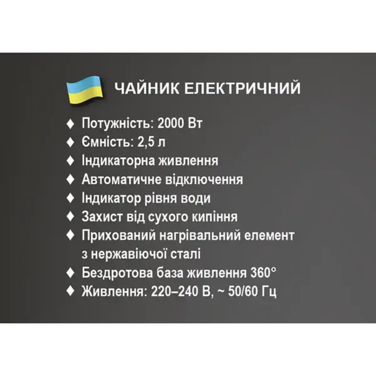 Опис Чайник електричний 2,5л 2000Вт BITEK BT-7819/ 6703 (16)