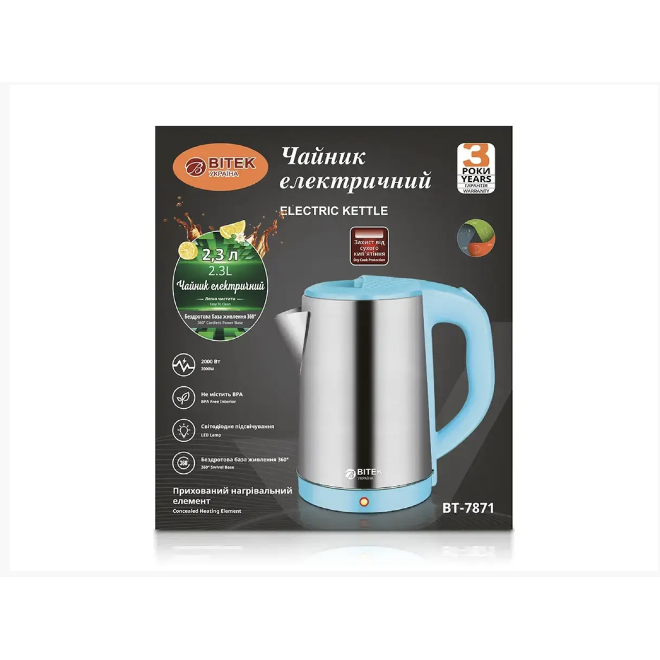 Опис Чайник електричний з нержавіючої сталі 2,3л 2000Вт BITEK BT-7883/ 6758 (16)