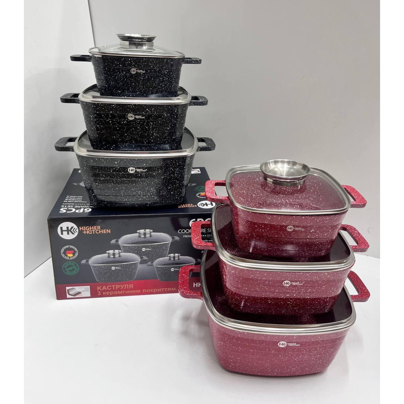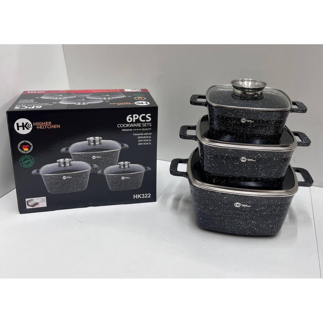 Питання та відповіді (FAQ) HK-322 Посуд Набір квадратних казанів Higher Kitchen (4)