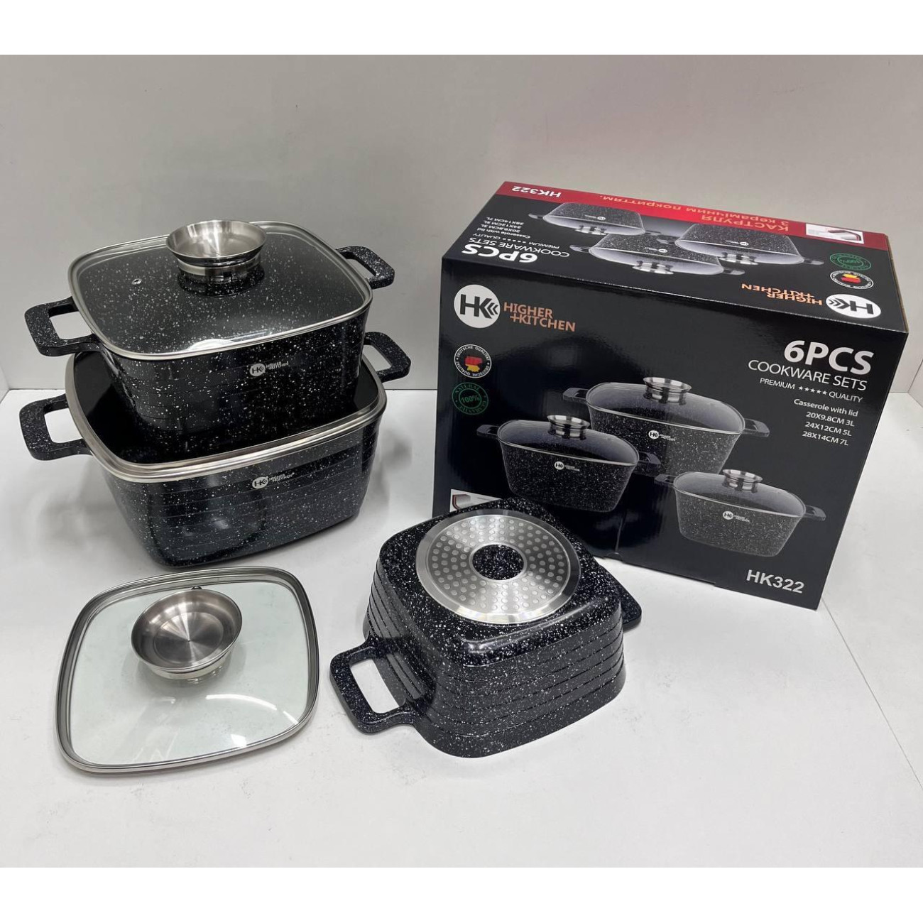 Опис HK-322 Посуд Набір квадратних казанів Higher Kitchen (4)