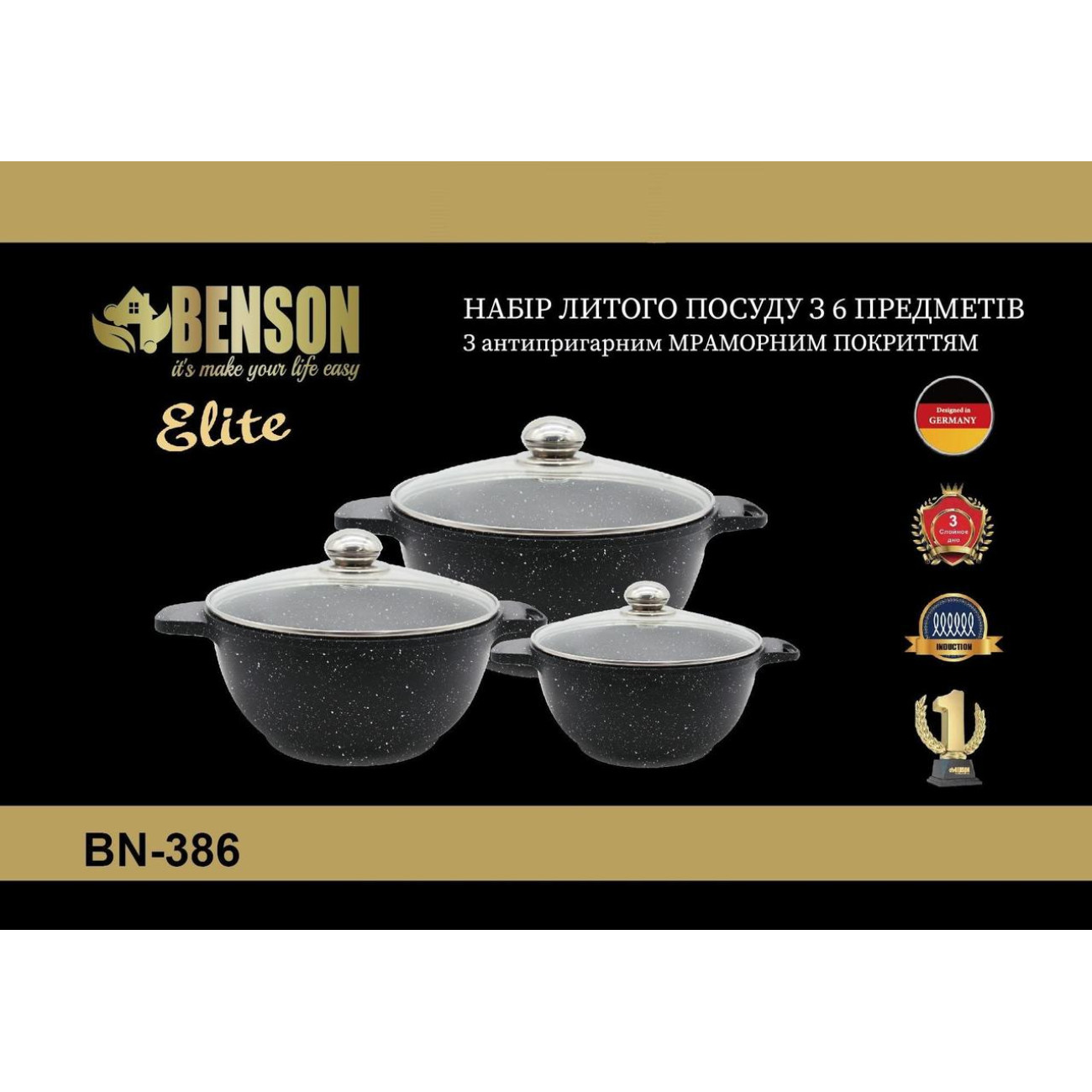 Основні характеристики Набір каструль 6 пр 2,4 л; 4,6л; 5,6 л Мармуровий покр BN-386 (4)