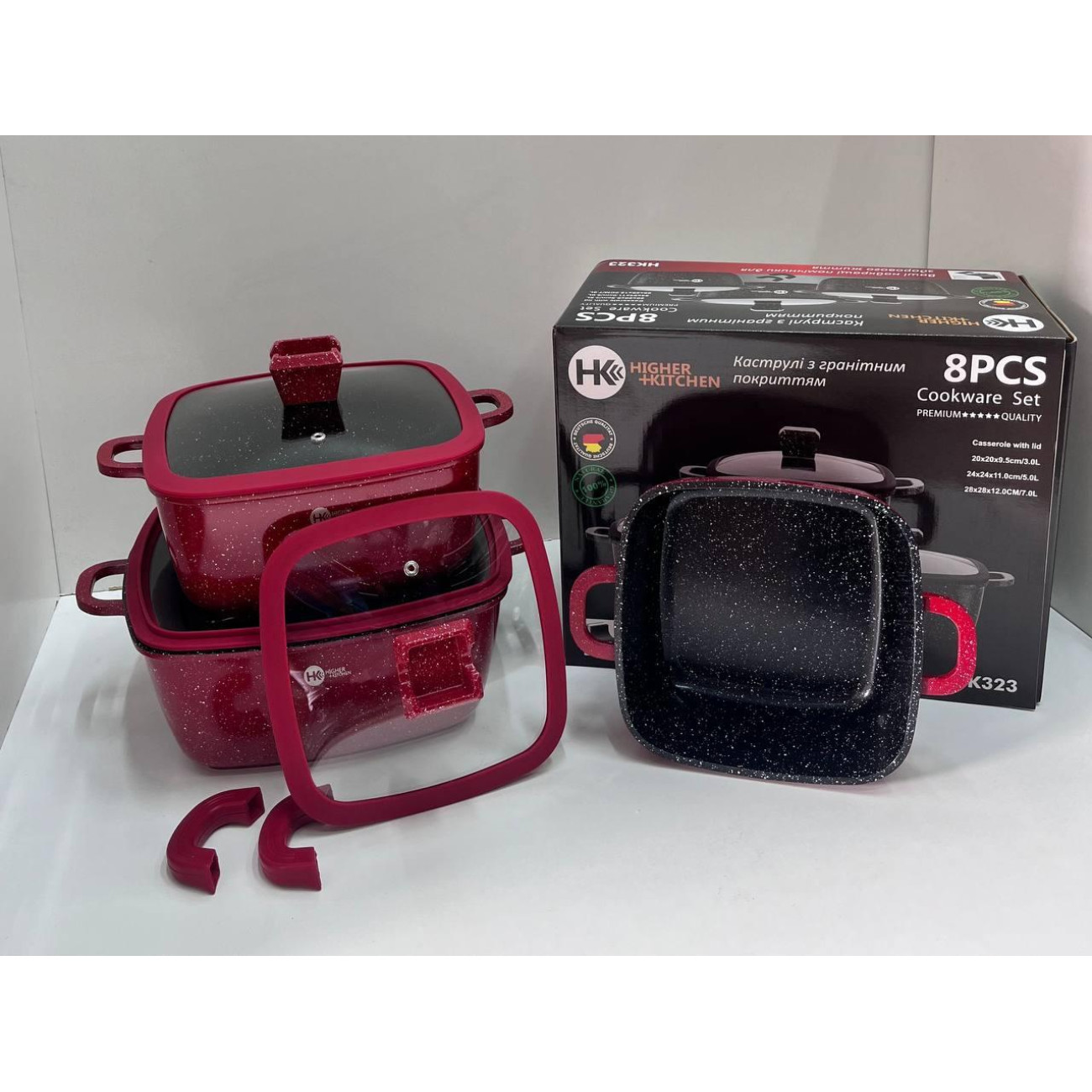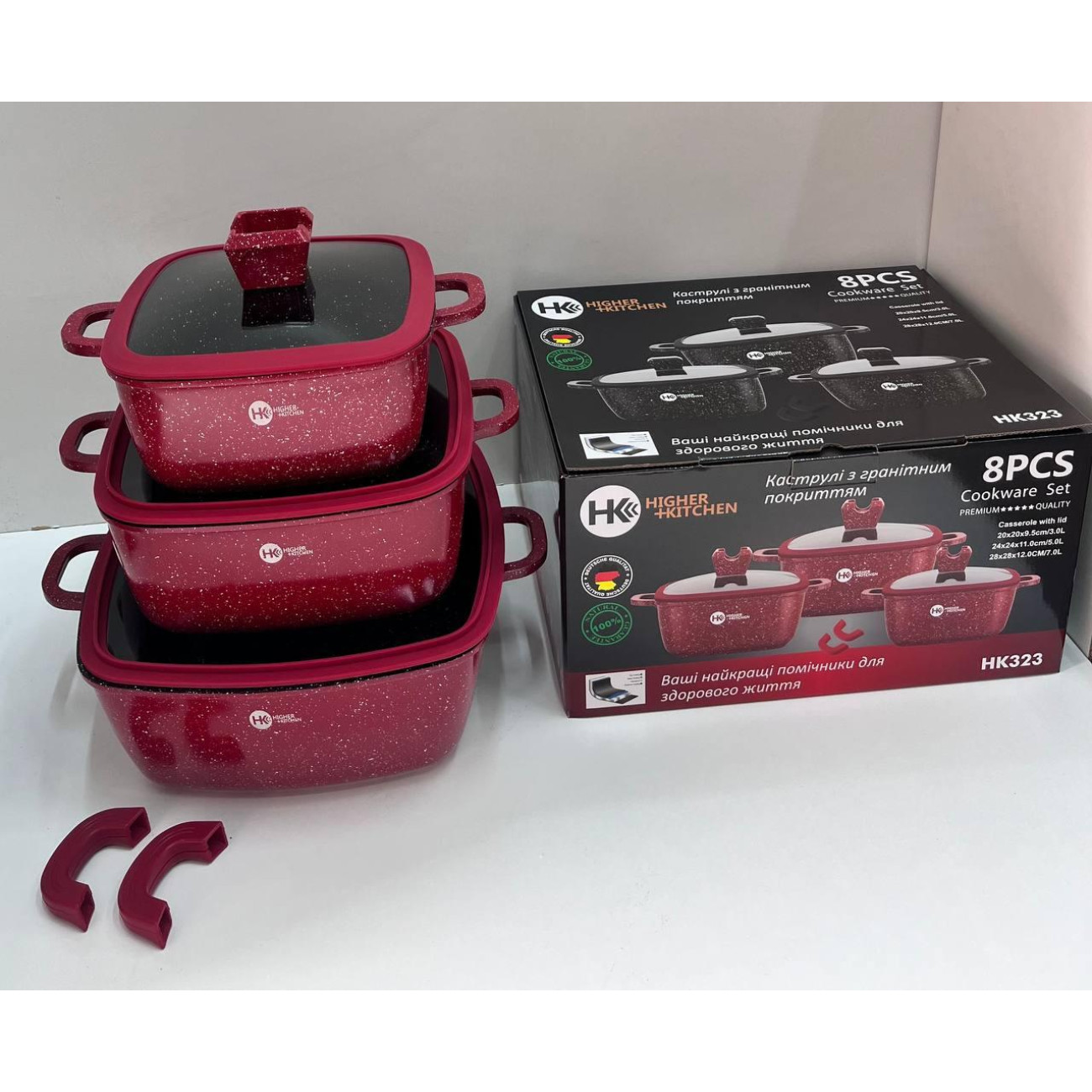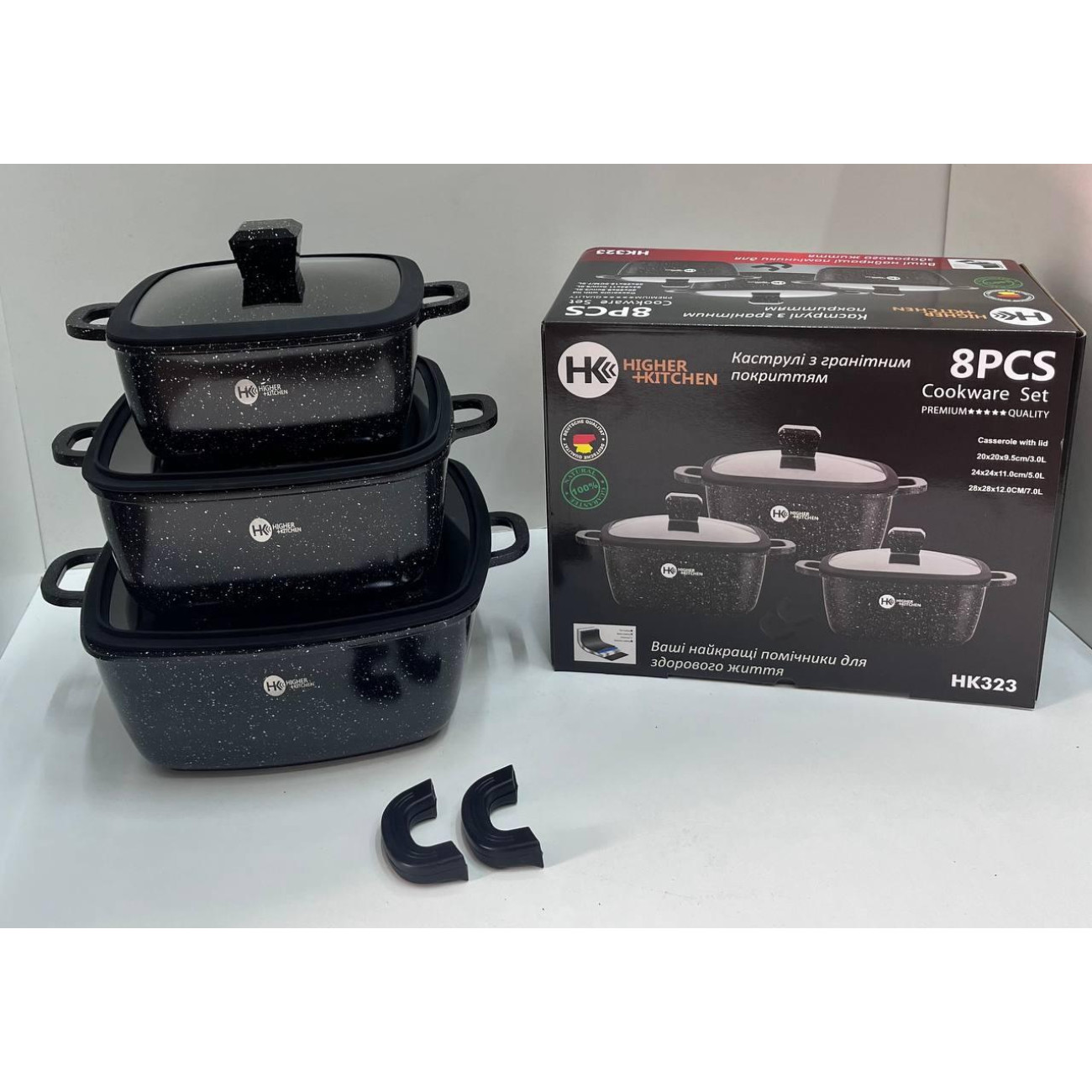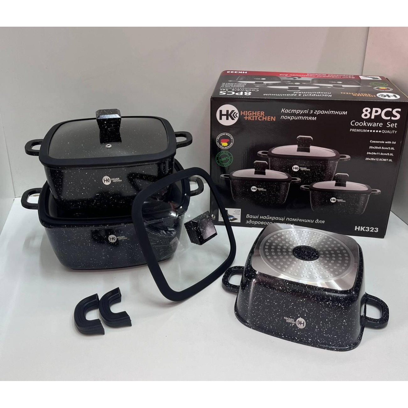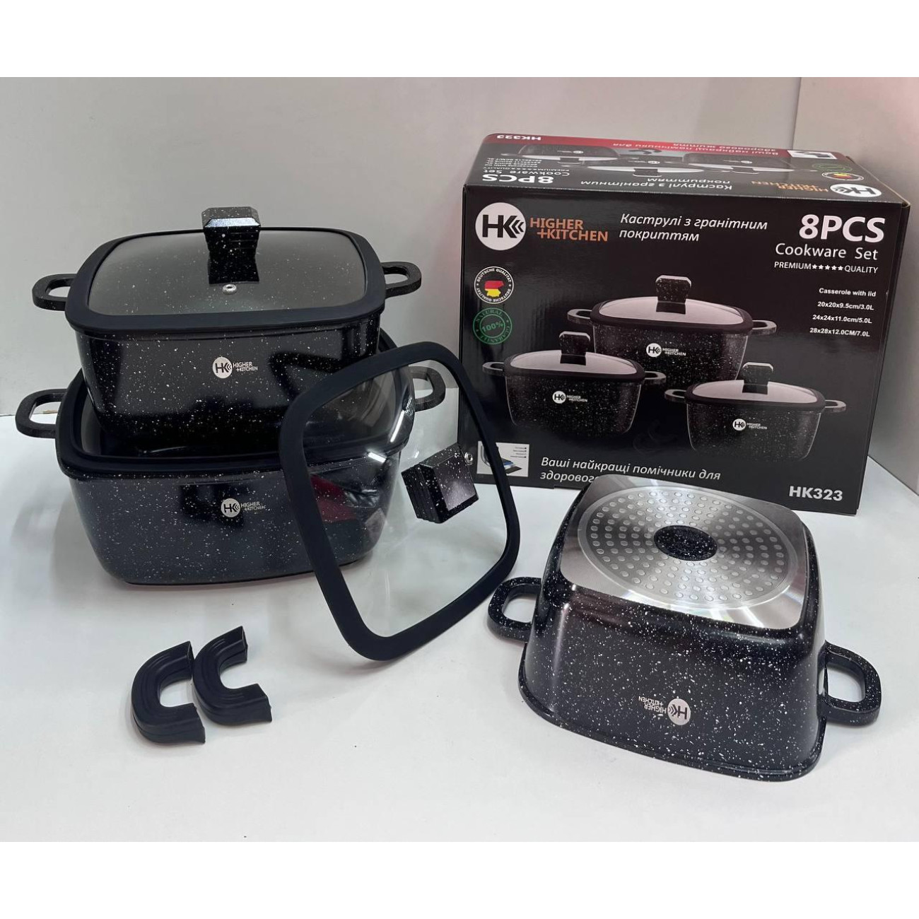 Питання та відповіді (FAQ) НК-323 Каструлі Набір квадратних із силіконовими кришками (4)
