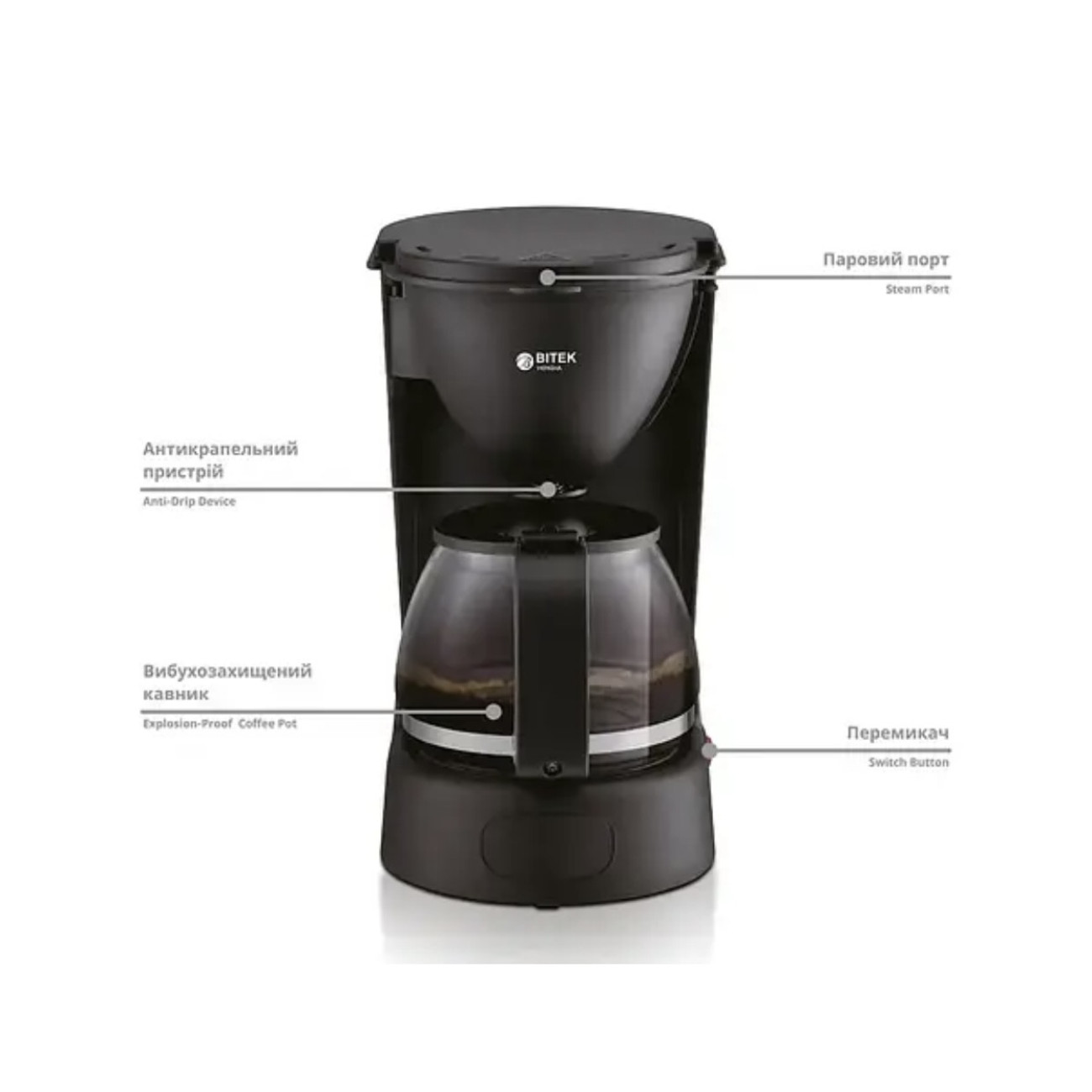 Опис Кавоварка крапельна 2800Вт 1000мл 220В BITEK BT-100/ 6626 (6)