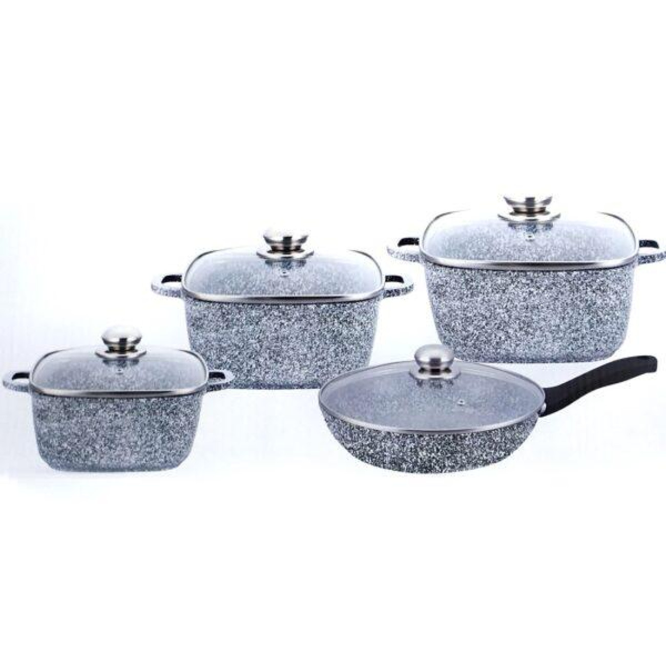 Опис BN-332 (2)-Набір квадро каструль8пр 3 л; 5,1л; 7 л +сковорода 26*5,5см Гранітне покр. світле