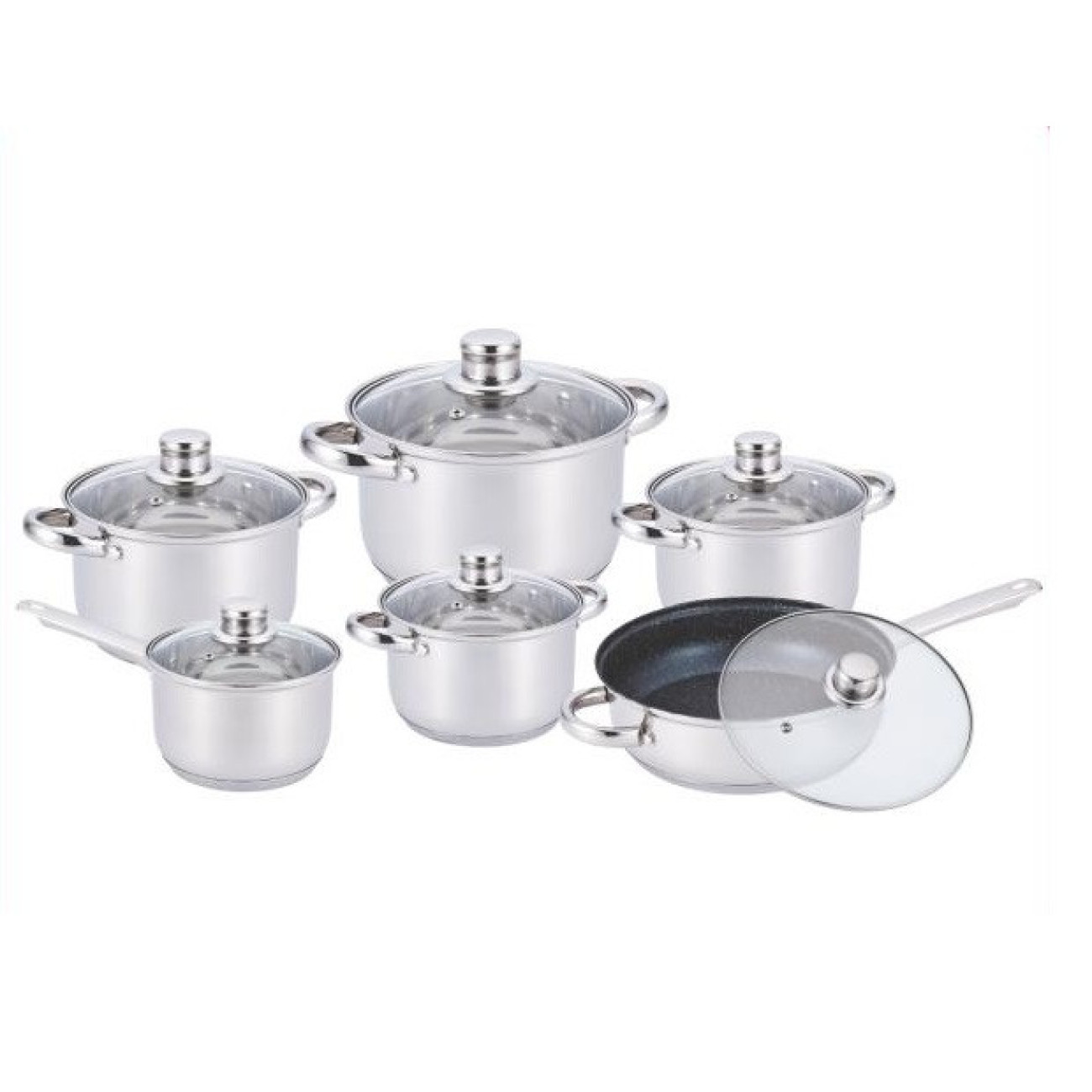 Опис Набір каструль 12 пр Нерж 2,1л; 2,1л; 2,9л; 3,9л; 6,5 л +сковорода 24 см BN-208 (2 шт./яск.)