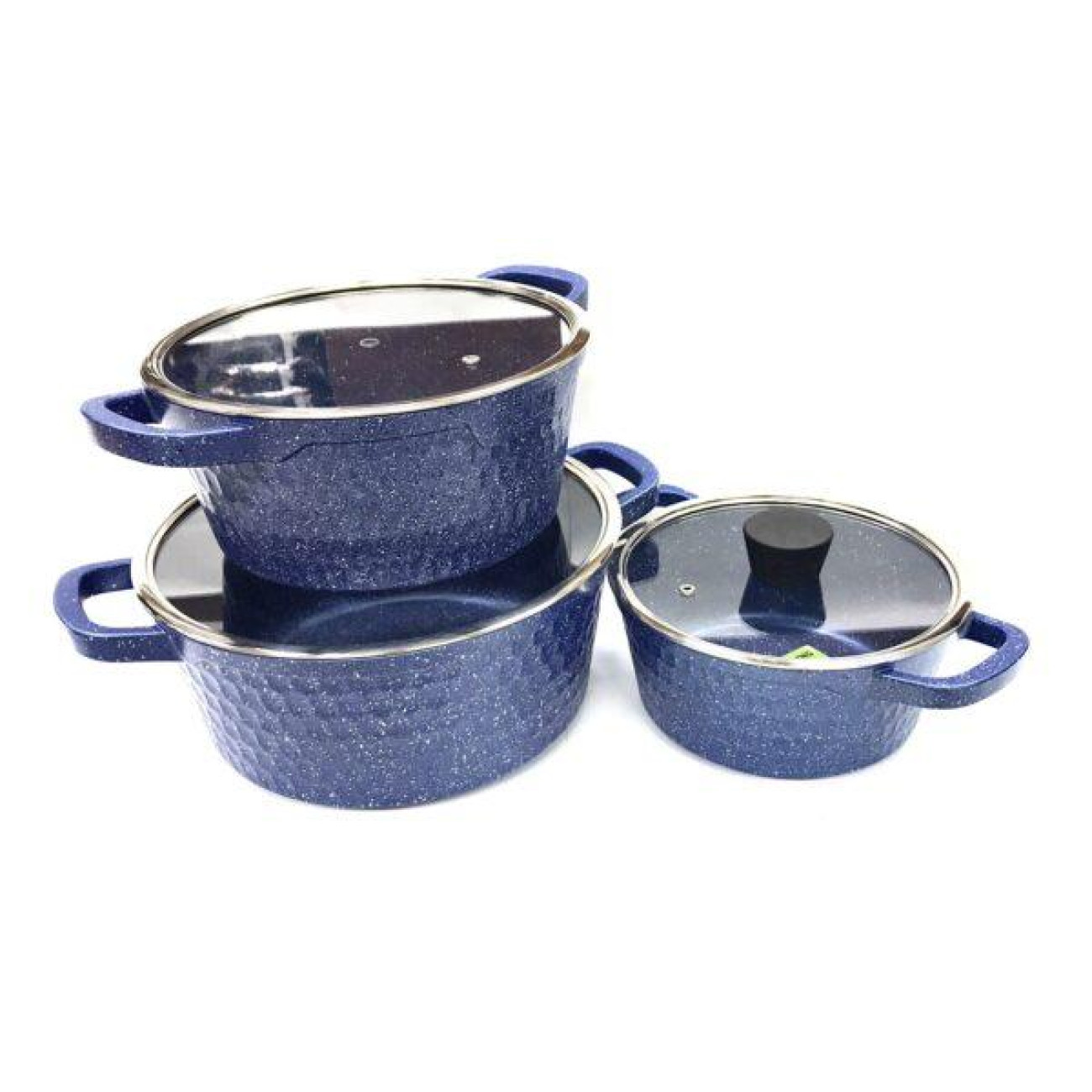 Опис Набір каструль 6 пр 2,5 л; 4,5 л; 6,5 л Мармурове блакитне покр BN-348 (4 шт./ясть)