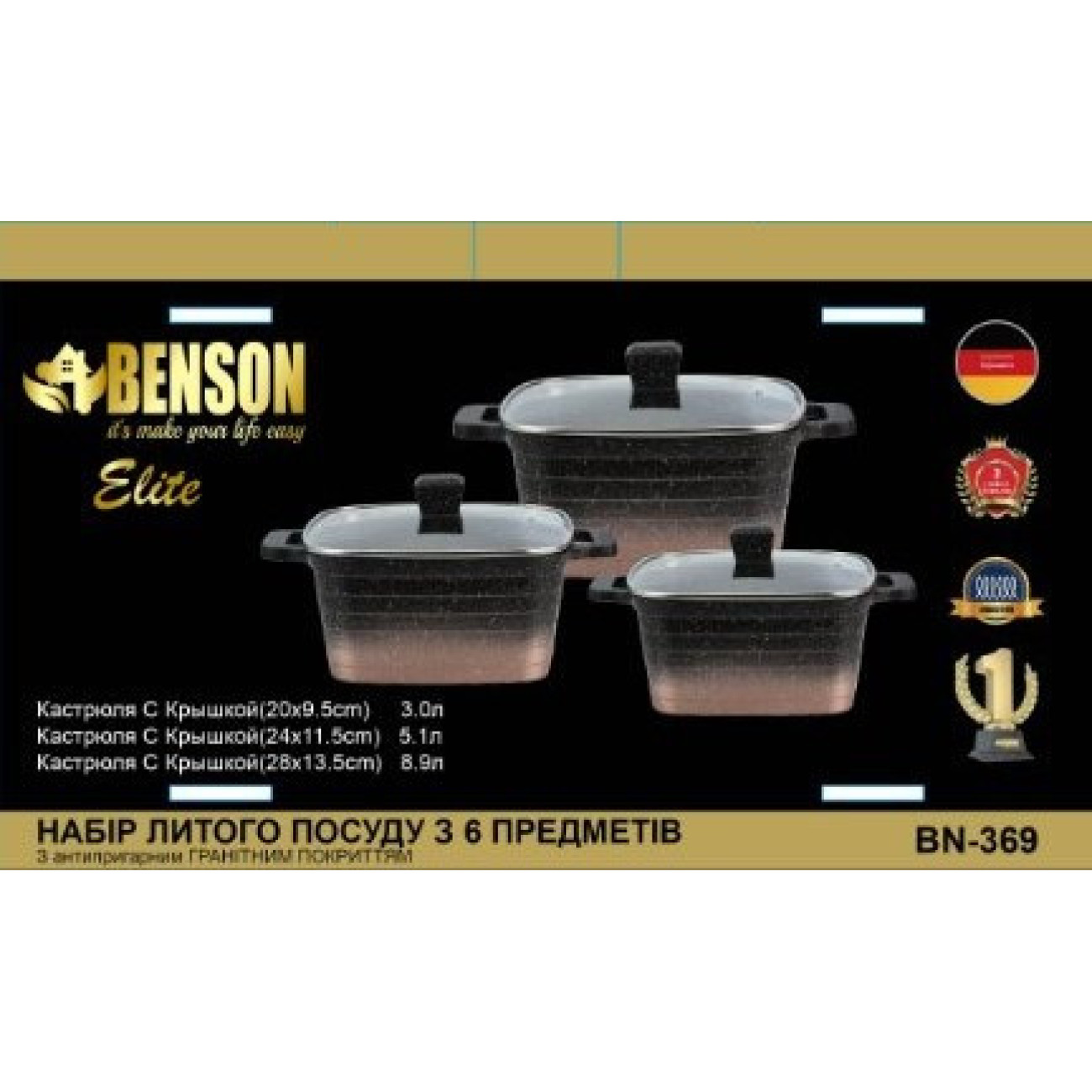 Опис Набір каструль із Мармуровим покром. 6 предметів BN-369 градієнт Бежевий у чорний і білі домішки