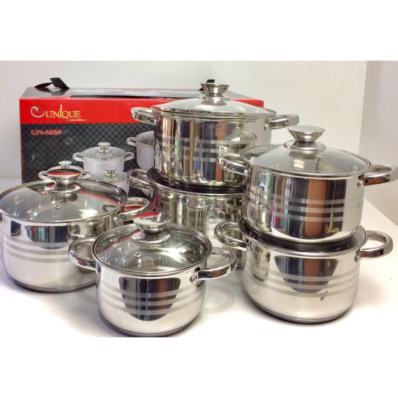 Опис Набір каструль UNIQUE UN-5035 12 пр. (2,1л, 2,9 л, 2,9 л, 3,9л, 5,1 л, 6,5 л, з кришками) (2 шт./яск)