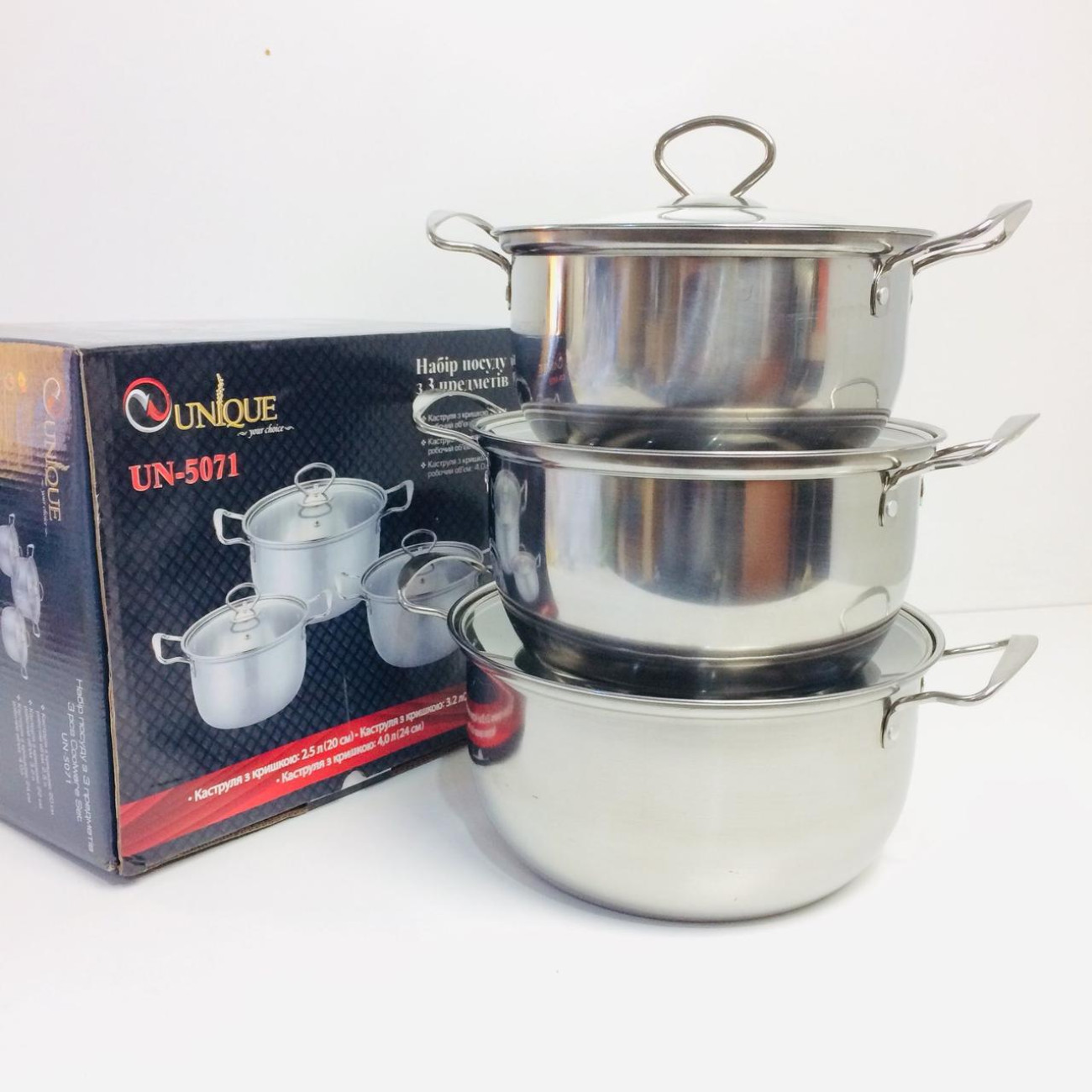 Відгуки про Набір каструль UNIQUE UN-5071 6 пр (20,22.24 см) (12 шт./ясть)