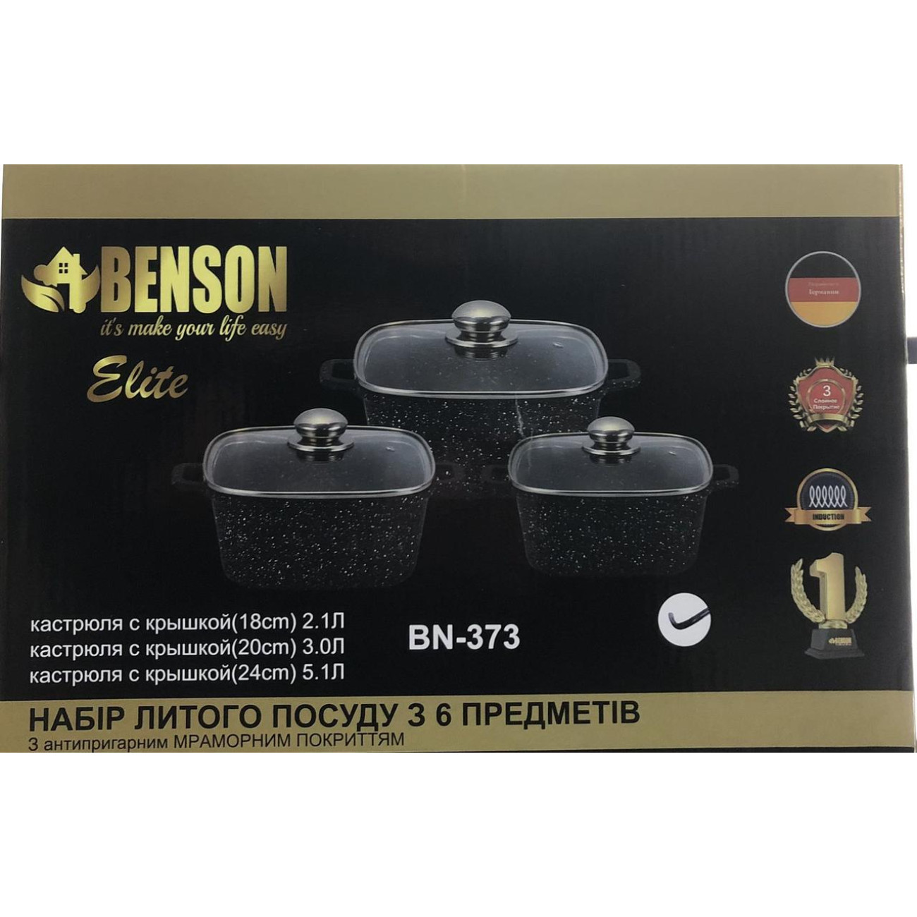 Основні характеристики Набір квадратний каструль 2,1 л; 3л; 5,1л; Чорний із білими домішками, Мармурове BN 373 (4 шт./ясть)