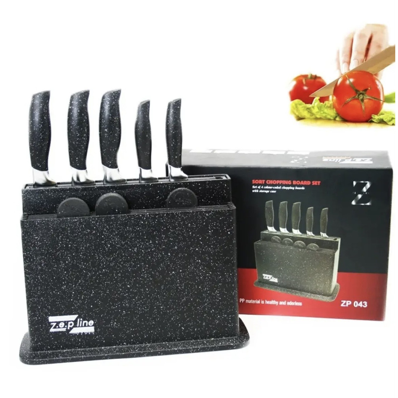 Опис Набір кухонних ножів і обробних дощок на підставці Zepline ZP 043 (6)