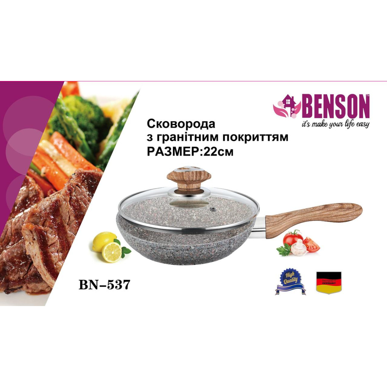 Опис Сковорідка з кричкою 22 см гранітне покр. з червоним BENSON BN-537 (8 шт.)