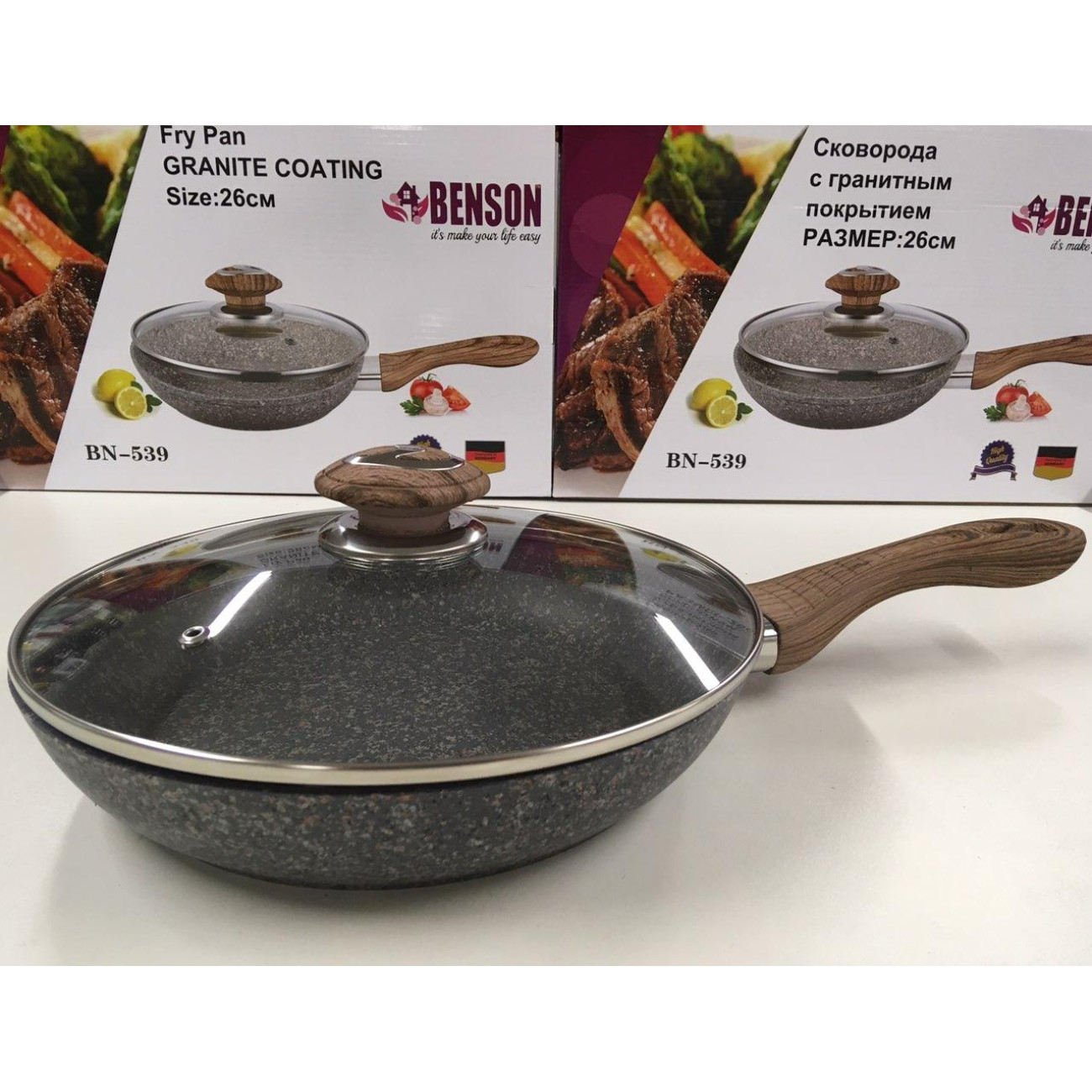 Опис Сковорідка з кричкою 26 см гранітне покр. з червоним BENSON BN-539 (6 шт.)