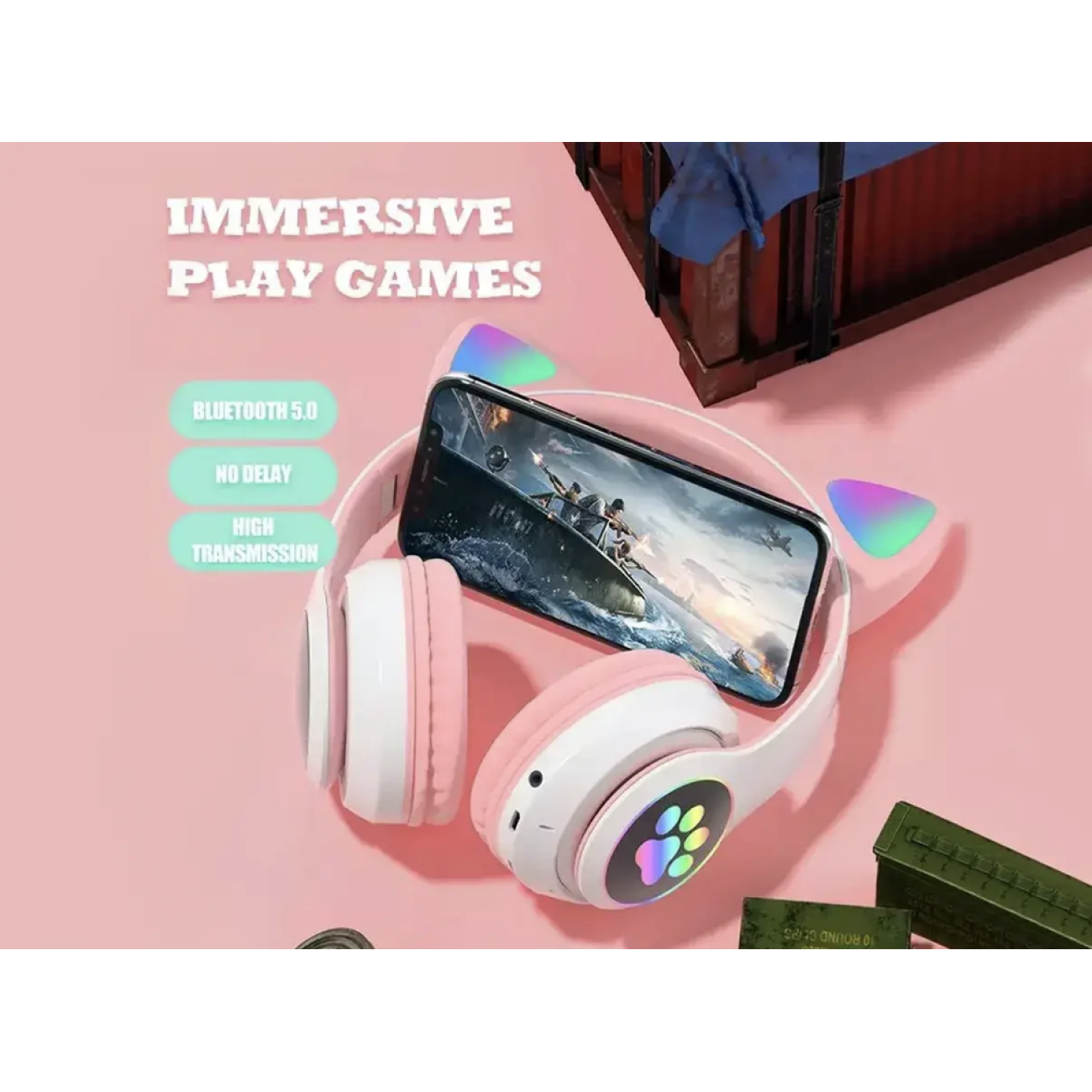 Опис Бездротові Bluetooth-навушники з вушками Cat Ear VZV-24M/8079 з LED-підсвіткою (80 шт./ясть)