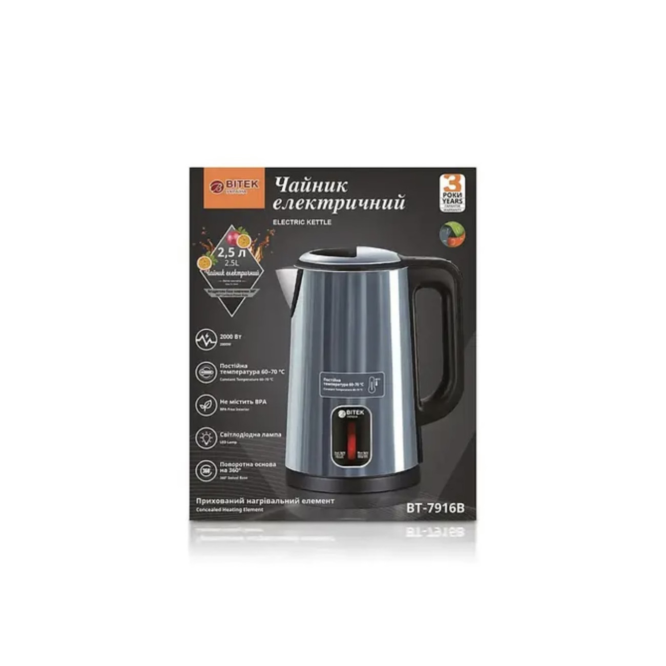Опис Чайник електричний 2.5 л 2000BT BITEK BT-7916B 6938 (16 шт)