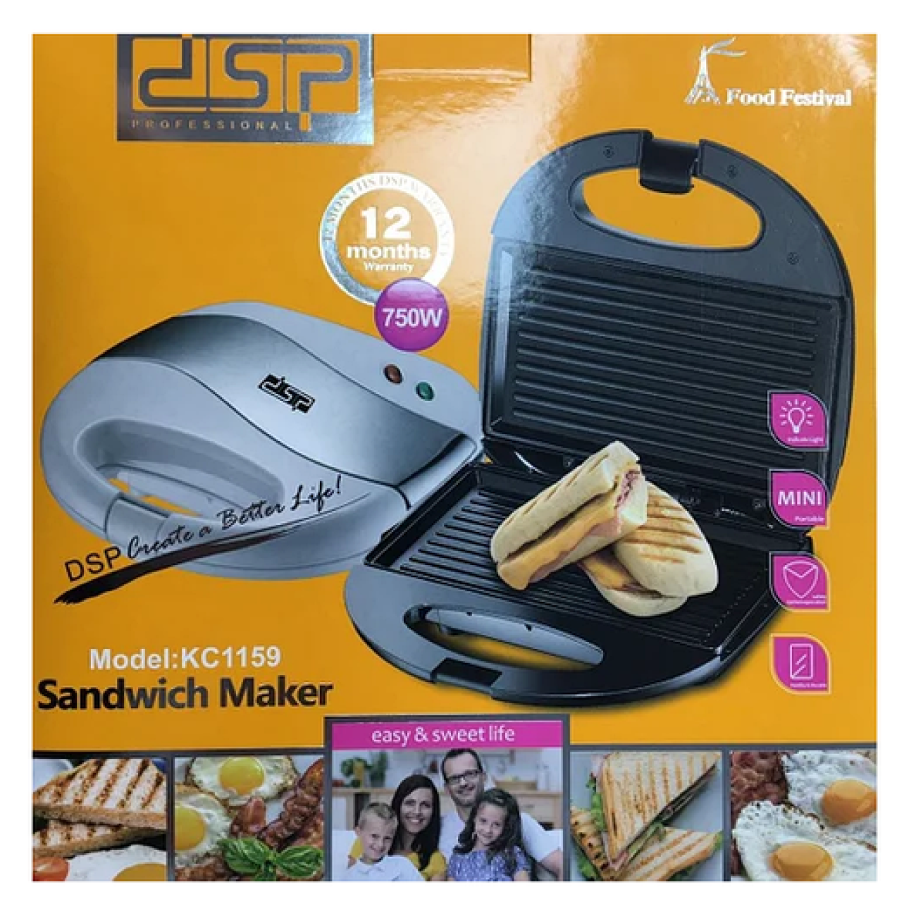 Компактна електрична сендвічниця DSP KC-1159 стане справжньою помічницьою на вашій кухні. Пристрій оснащений високою потужністю 750 Вт і має антипригарне покриття нагрівальних панелей, що дозволяє легко приготувати гарячі сендвічі з різними начинками, апетитні соковиті стейки, рибу, овочі та інші продукти без використання олії.