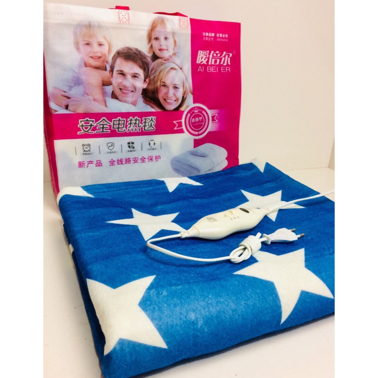 Опис Електропростирадло із сумкою 150 * 120 біла зірка на синьому тлі ART-7418 (20 шт.)