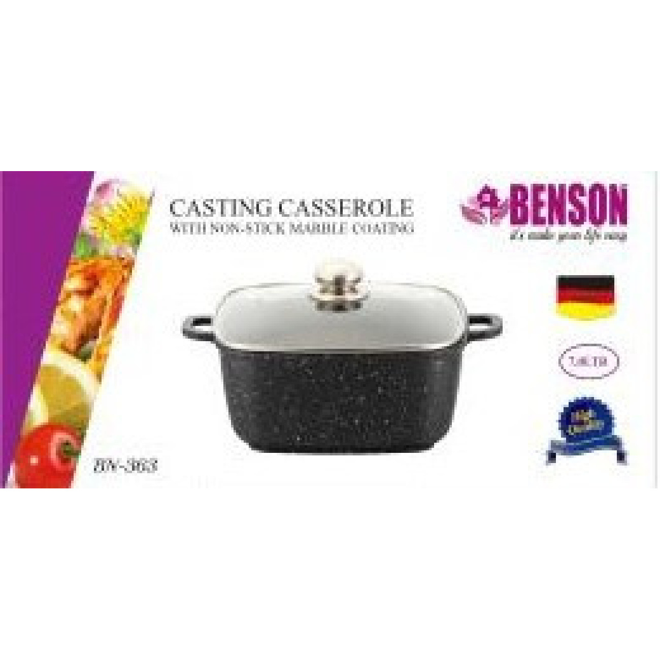 Основні характеристики Каструля з кришкою 7 л,28 см Квадрат, Мармурове покриття BENSON BN-363 (6 шт./ясть)