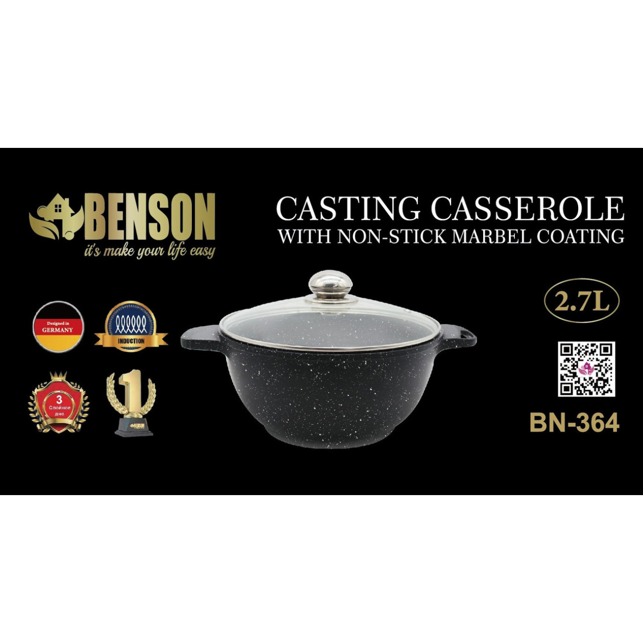 Основні характеристики Каструля з мармуровим покриттям BN-364 (2,7 літра) (6 шт./яск)