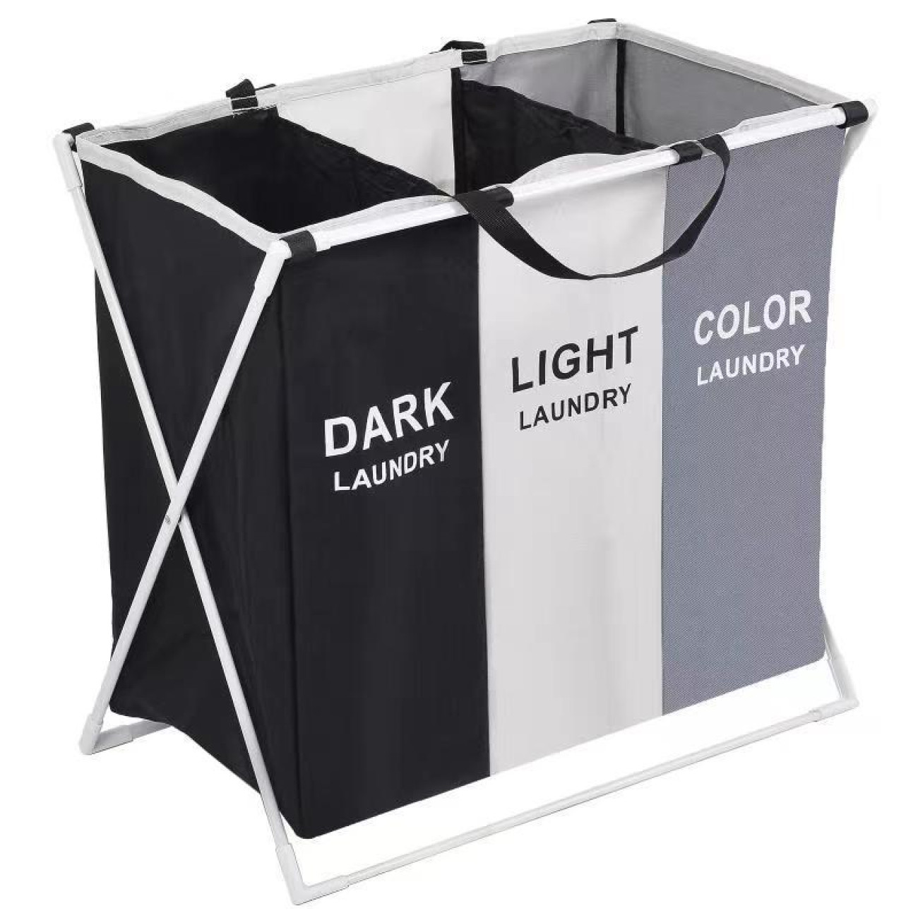 Опис Кошик для білизни розкладний із 3 відсіками для сортування темних, кольорових і світлих LB 104(20 шт./ясть)