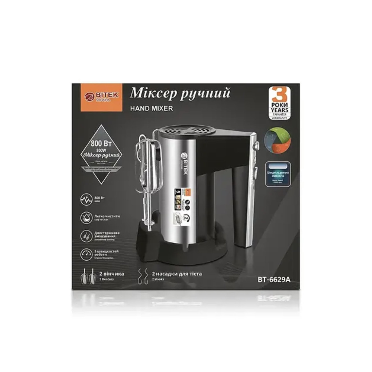 Опис Міксер ручний 800Вт BITEK BT-6629A 6931 (16 шт)