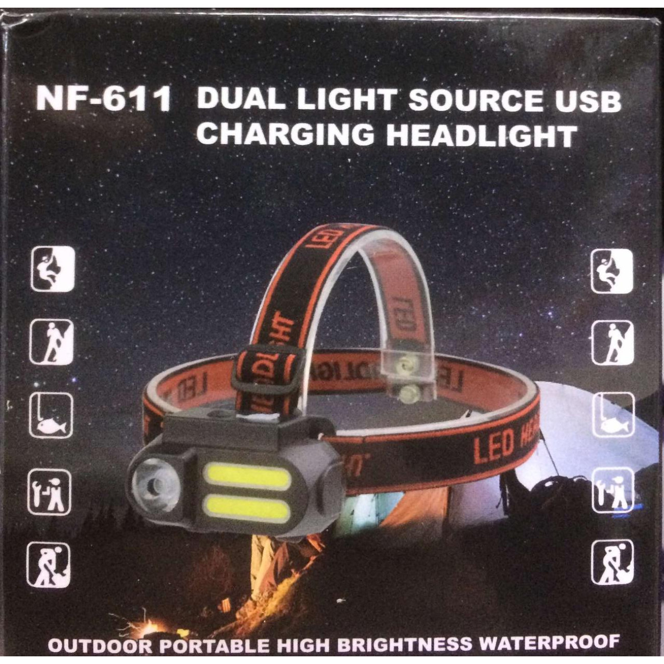 Опис Налобний ліхтар акумуляторний NF 611/AVM 128 XPE+COB (240 шт./яский)