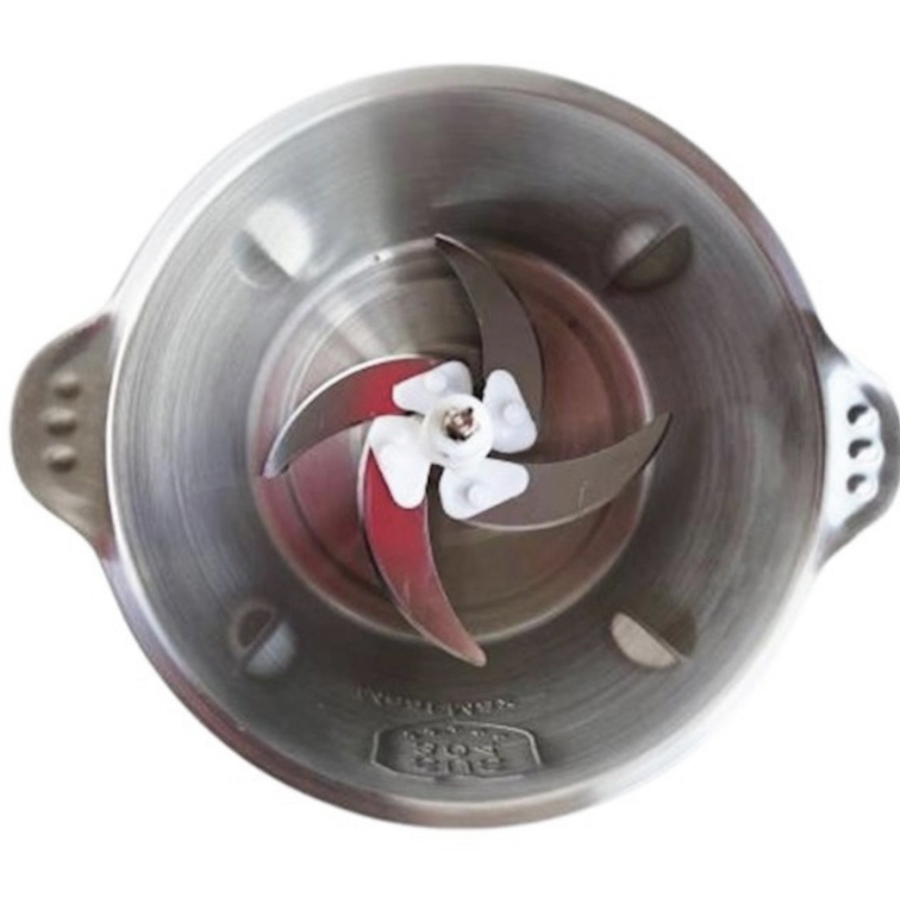 Місткість має внизу прогумоване дно, яке утримує чашу подрібнювача під час роботи з ним на слизьких кухонних стільницях. Ножі виконані з високоякісної нержавіючої сталі, вони дуже гострі і не тупляться навіть при інтенсивному використанні приладу. Під час чищення будьте обережні, щоб не порізатись.