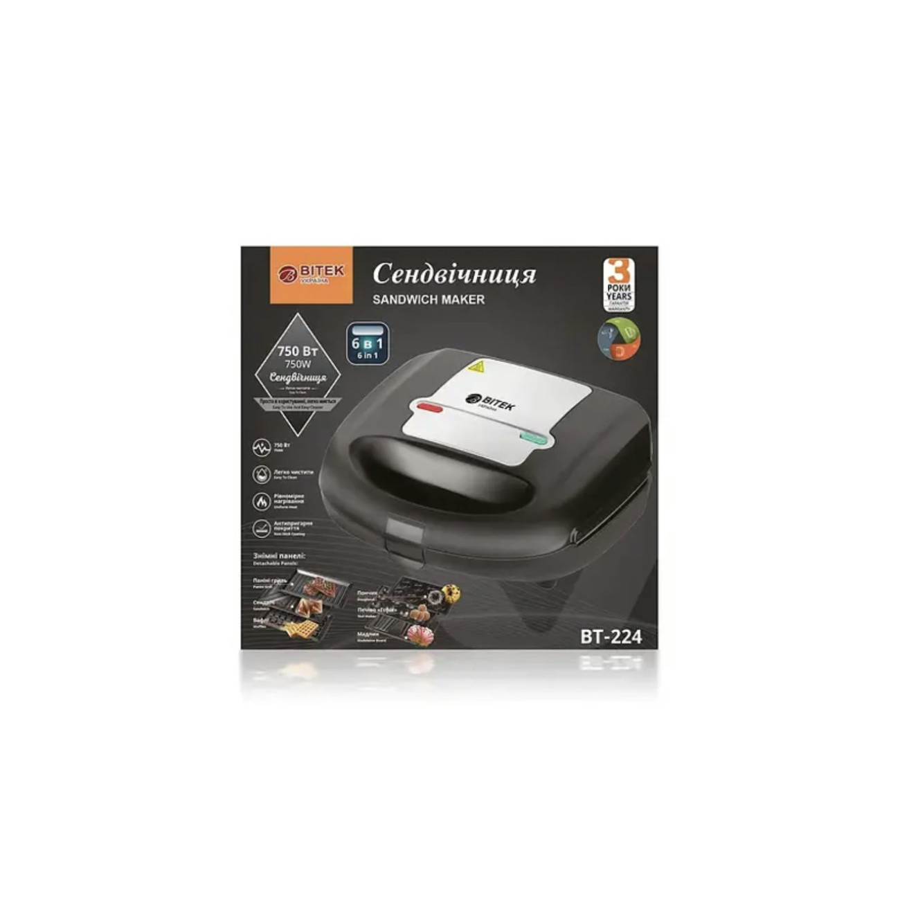 Відгуки про Сендвічниця 6 в 1 750Вт BITEK BT-224 7121 (6 шт)