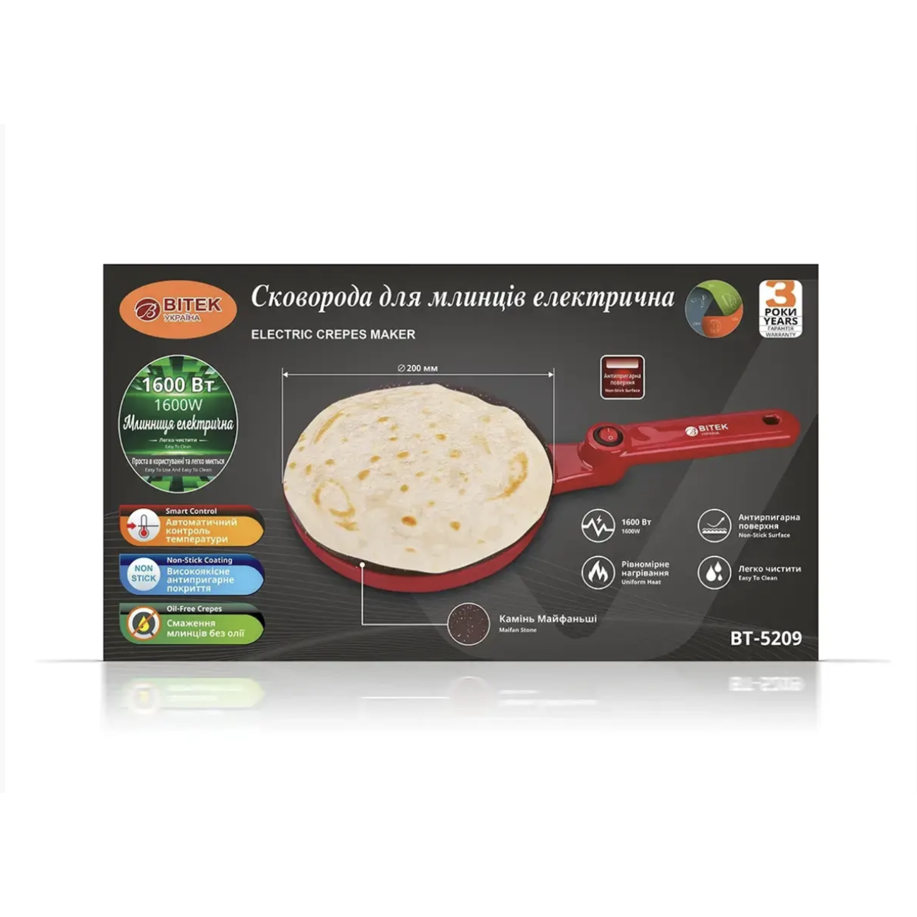Сковорода для млинців електрична 1600Вт 220В BITEK BT-5209/ 6780 (16)