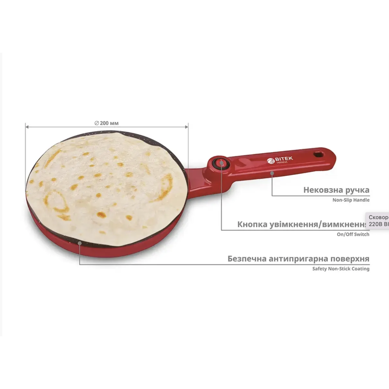 Опис Сковорода для млинців електрична 1600Вт 220В BITEK BT-5209/ 6780 (16)