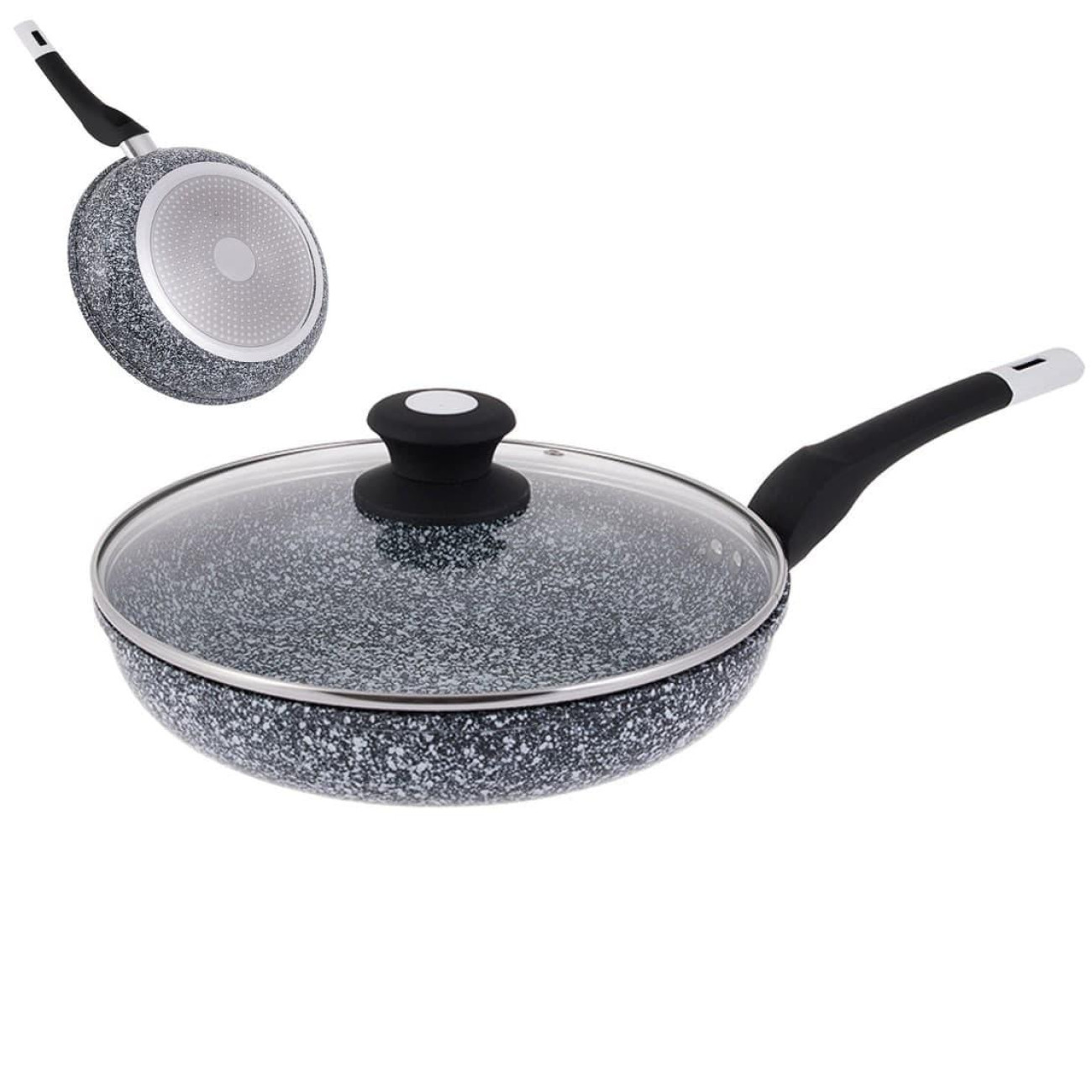 Опис Сковорода UNIQUE UN-5115-24 см з кришкою/граніт світлий (6 шт./ясть)