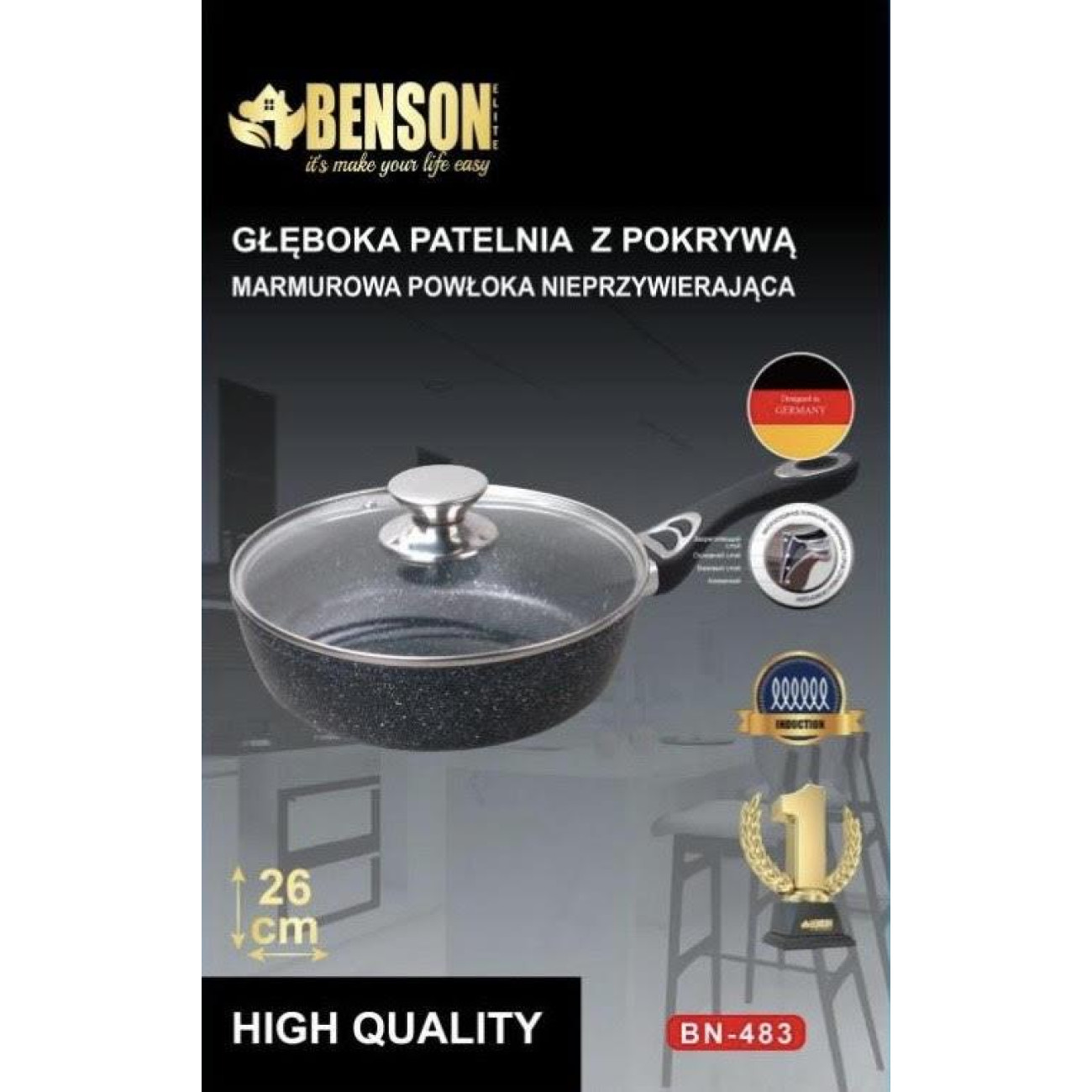 Опис Сковорода з кришкою глибока мармурове антипригарне покриття 26*7 см BN-483 (6 шт./ясть)