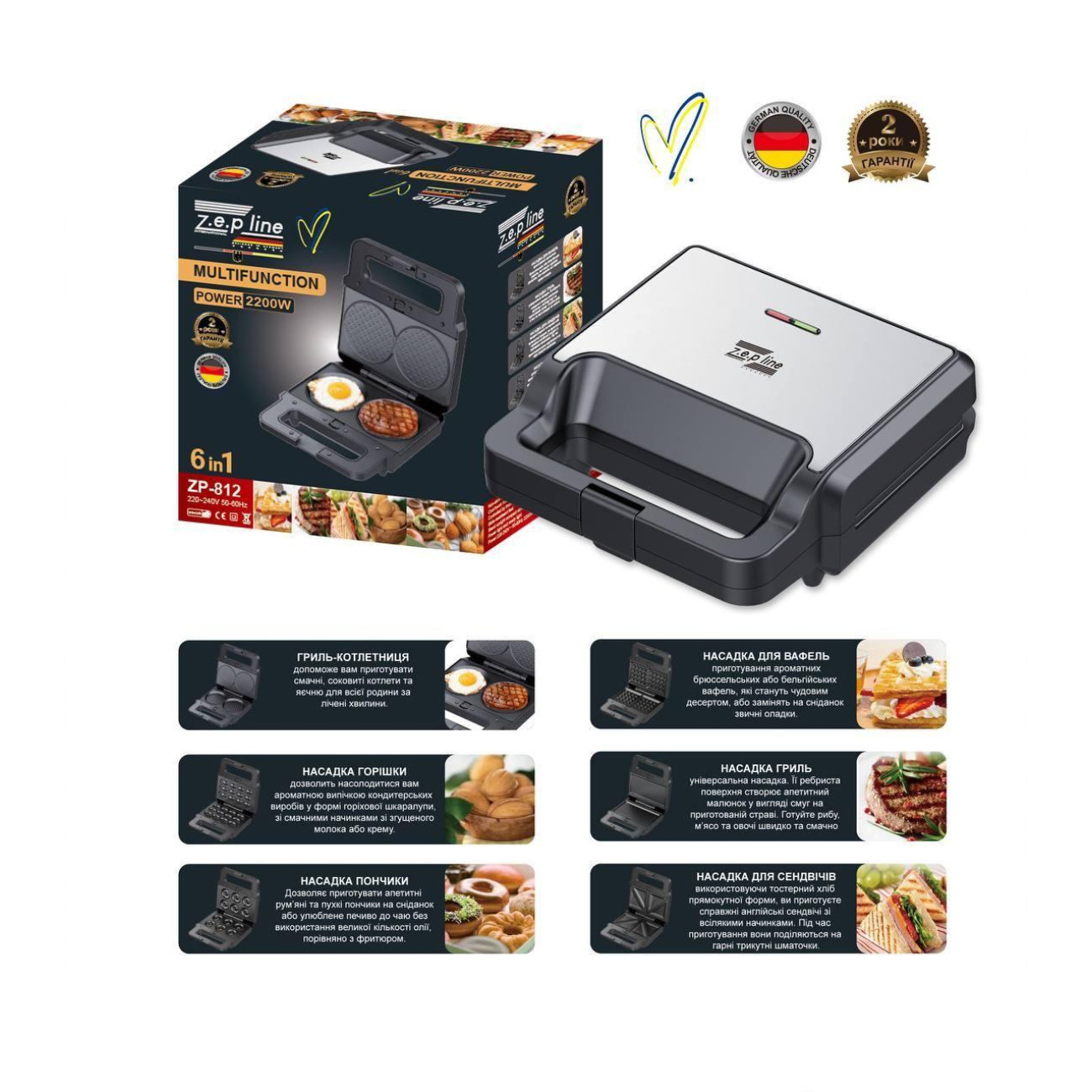Опис Вафельниця 6в1 2200 Вт Zepline ZP-812 Мультимейкер зі знімними пластинами (6)
