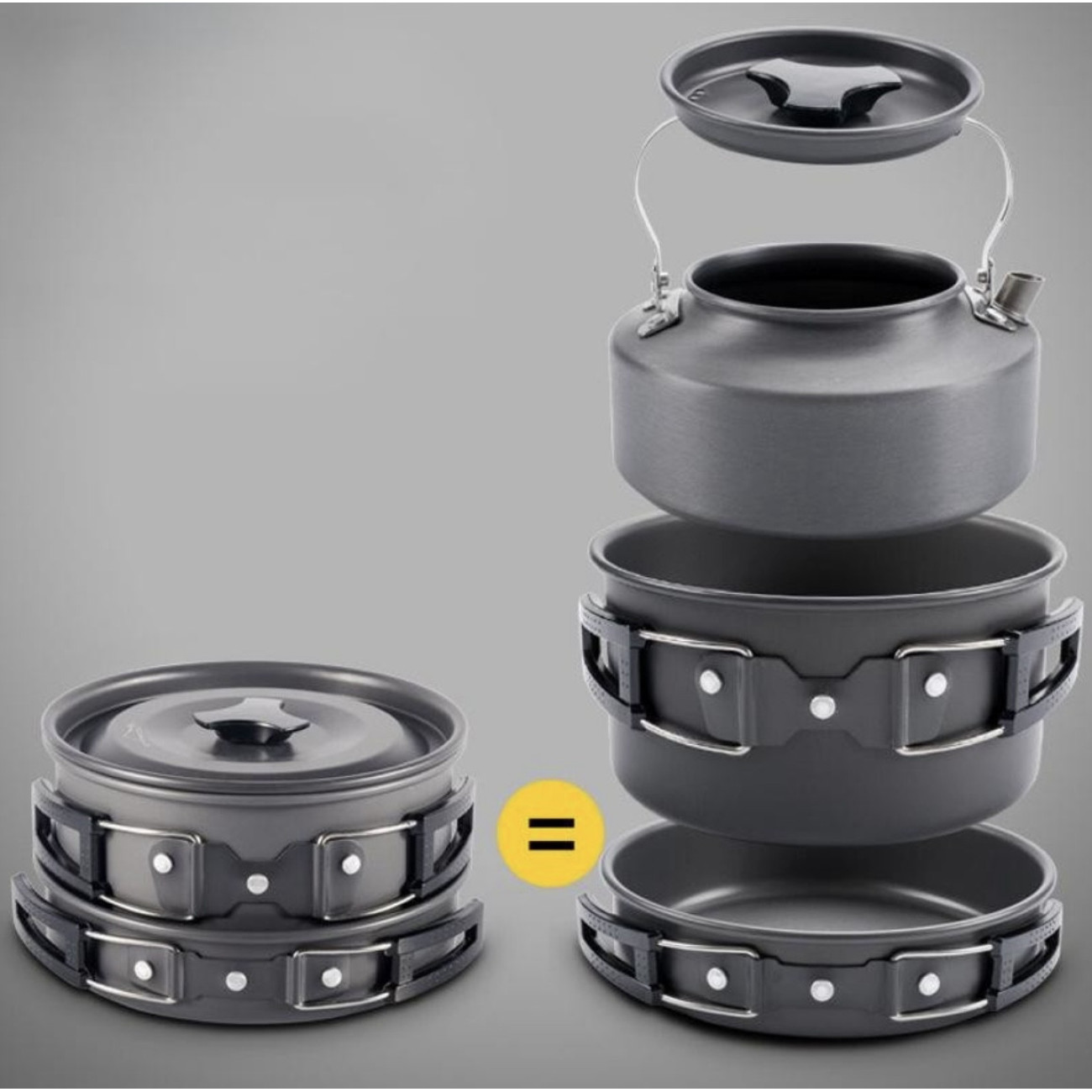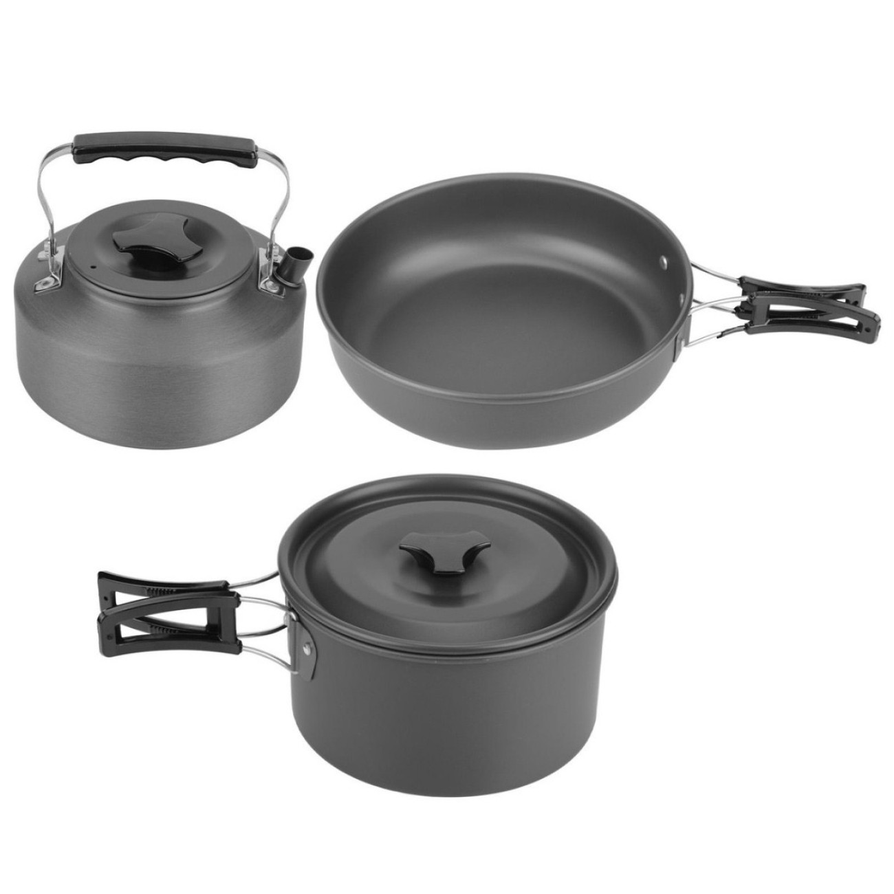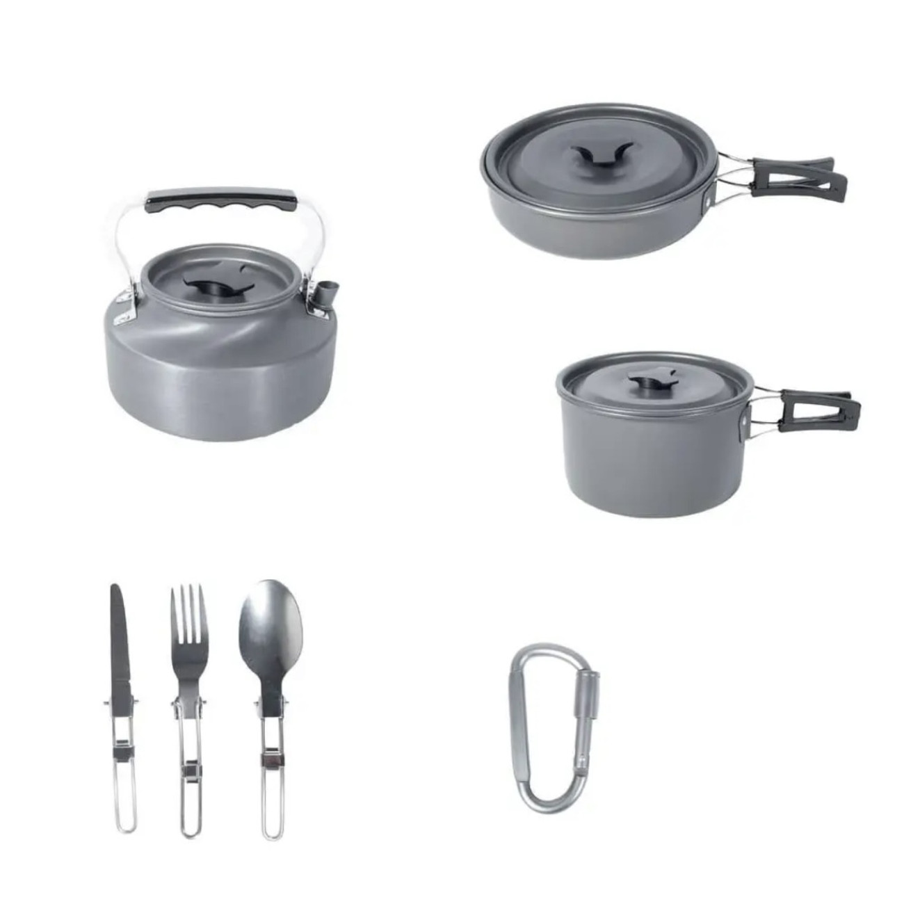 Опис Алюмінієвий туритичний набір посуду (каструлі, сковорідка, чайник, столове приладдя) GL-С31 (20)